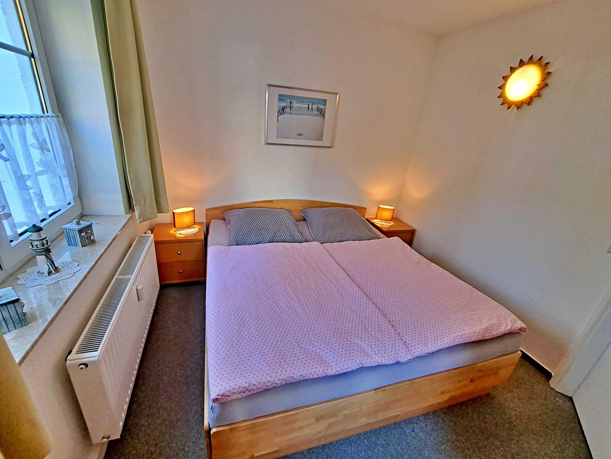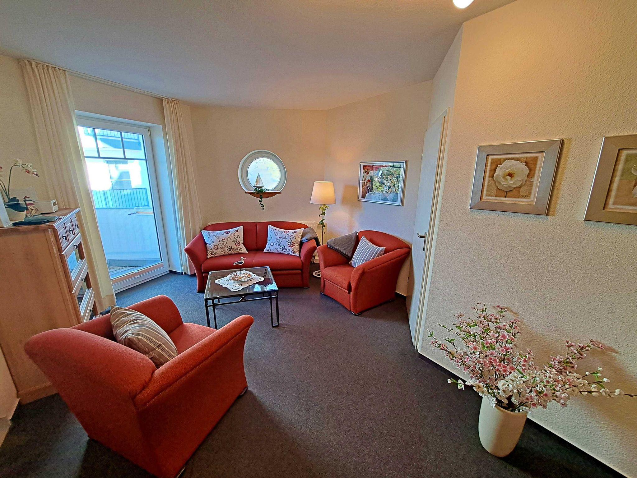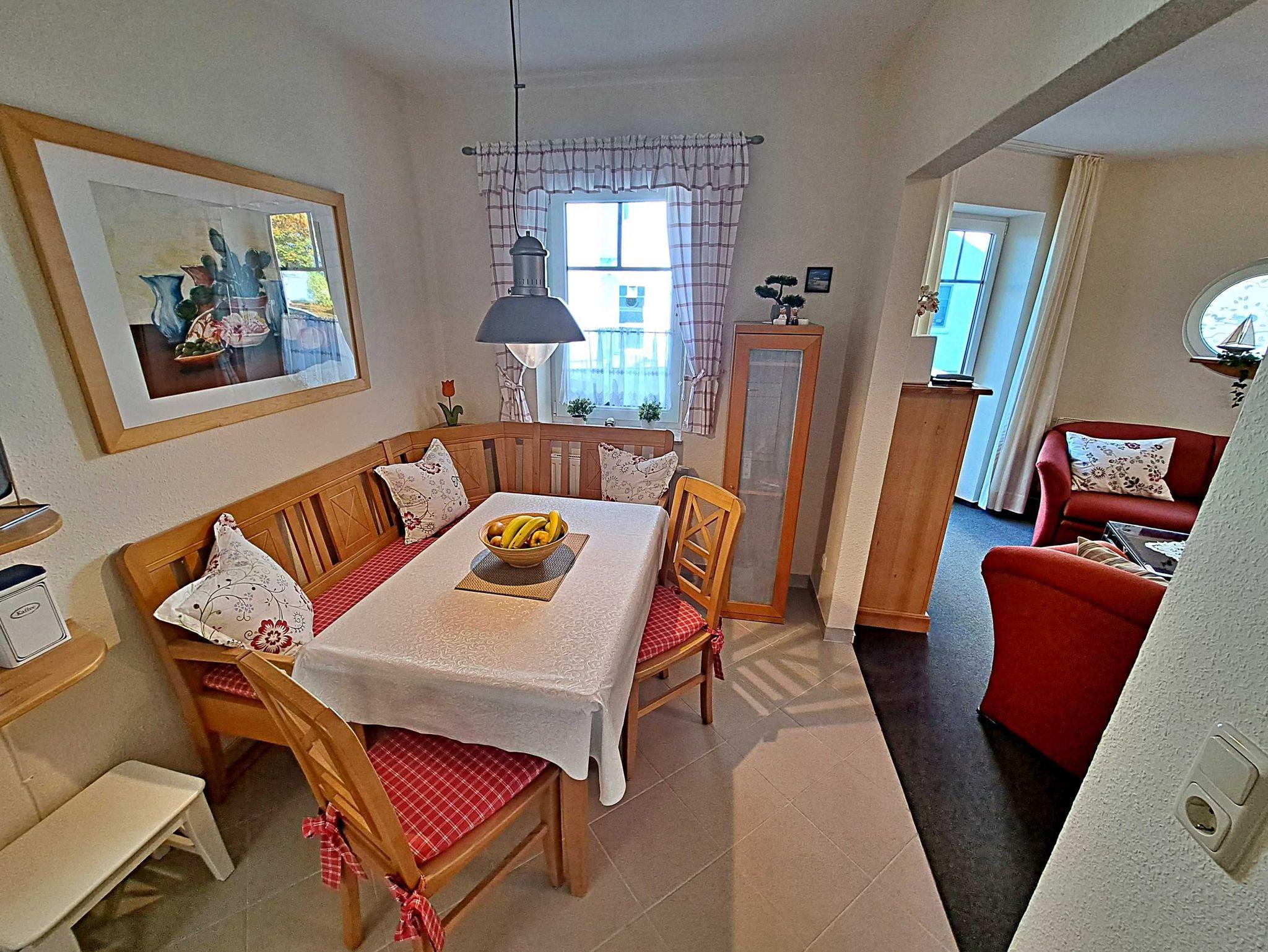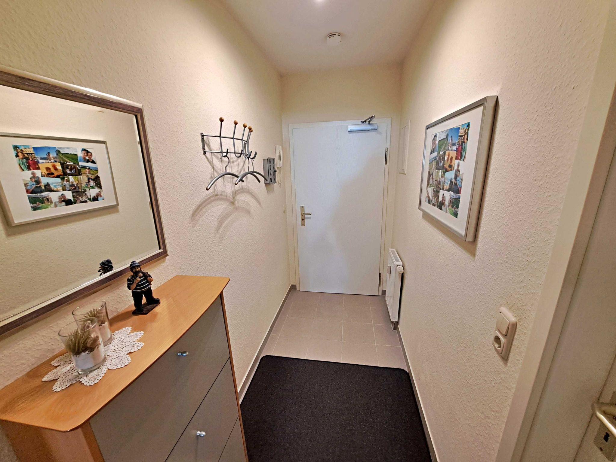 Herzlich willkommen in dieser gemütlichen und gepflegten Wohnung! Sie befindet sich im Erdgeschoss und besticht durch geschmackvoll eingerichtete Zimmer. Das Wohnzimmer und die Küche sind durch einen offenen Wanddurchbruch miteinander verbunden, was für eine einladende Atmosphäre sorgt. Im Wohnzimmer finden Sie neben einem Flachbild-TV auch zwei bequeme Sessel und ein Sofa, das sich bei Bedarf in ein Schlafsofa (1,30 m x 2,00 m) umwandeln lässt - ideal, wenn Sie getrennt schlafen möchten. Für die kleinen Gäste steht ein Kinderreisebett sowie ein Hochstuhl bereit, damit sich auch die Jüngsten wohlfühlen. Genießen Sie die warmen Sommermonate auf dem möblierten Balkon in Süd-West-Richtung, der vom Wohnzimmer aus zugänglich ist. Hier können Sie morgens Ihr Frühstück genießen oder den erlebnisreichen Tag bei einem Glas Wein ausklingen lassen. Die Küche ist modern ausgestattet mit einem Cerankochfeld, Spülmaschine, Kaffeemaschine, Wasserkocher und Toaster. An dem großen Esszimmertisch gibt es genügend Platz um die selbstgekochten Mahlzeiten zu genießen - auf der gemütlichen Eckbank und den zwei Stühlen. Das separate Schlafzimmer bietet Ihnen ein komfortables Doppelbett (Liegefläche 1,80 x 2,00 m) sowie einen Kleiderschrank mit ausreichend Ablagemöglichkeiten und Bügeln für Ihre Kleidung. Das Badezimmer ist mit einer Dusche und WC ausgestattet. Ihr Auto und Ihre Fahrräder sind sicher in der Tiefgarage untergebracht, die eine Einfahrthöhe von 2 m und eine Einfahrtsbreite von 2 m bietet.