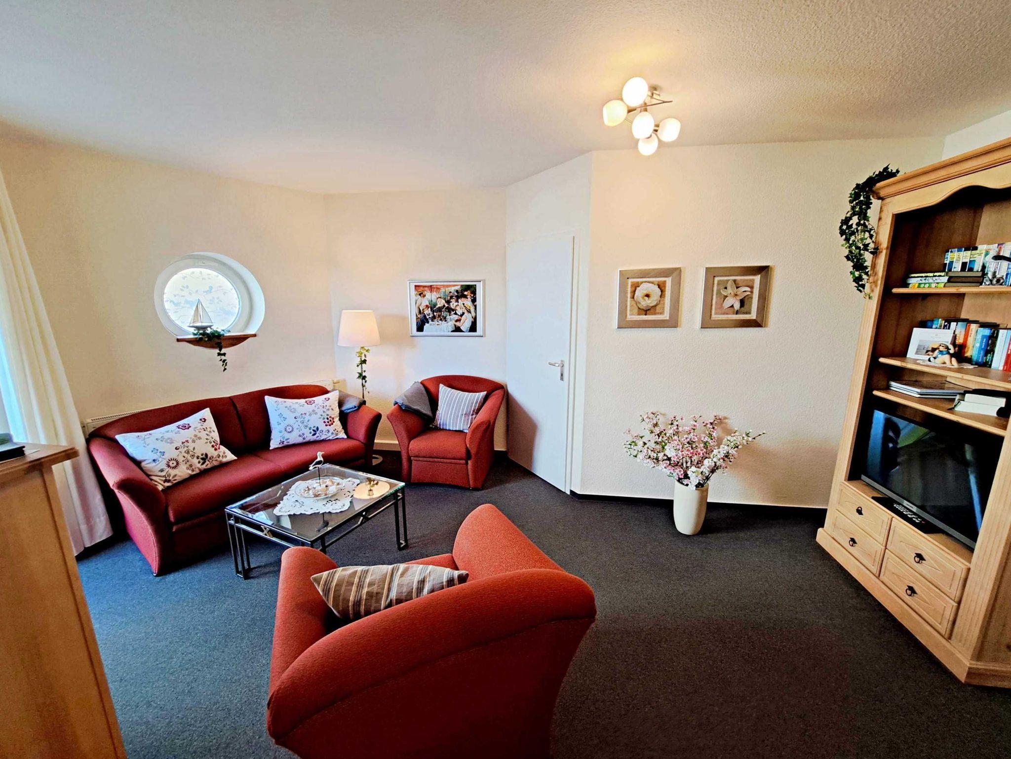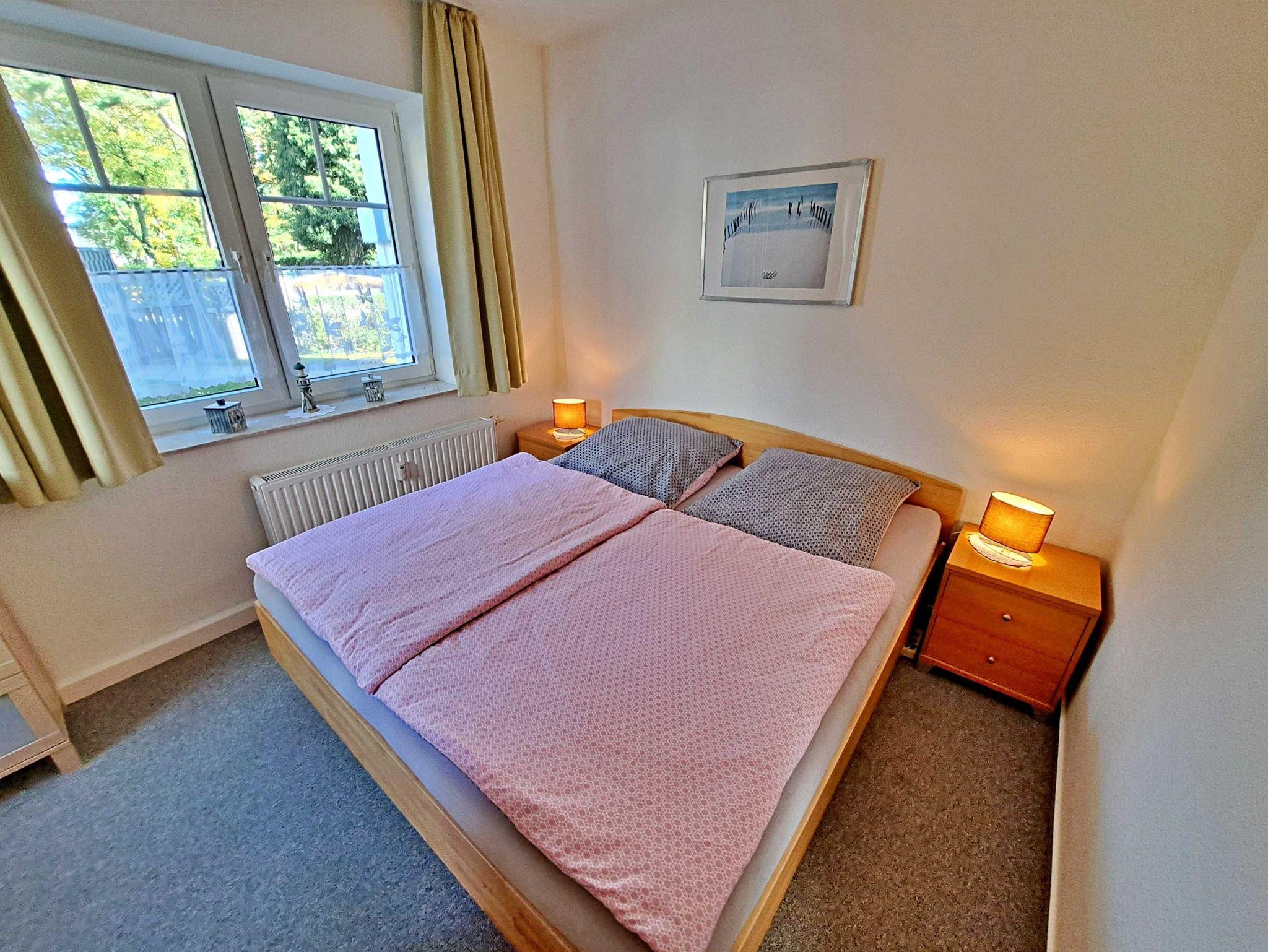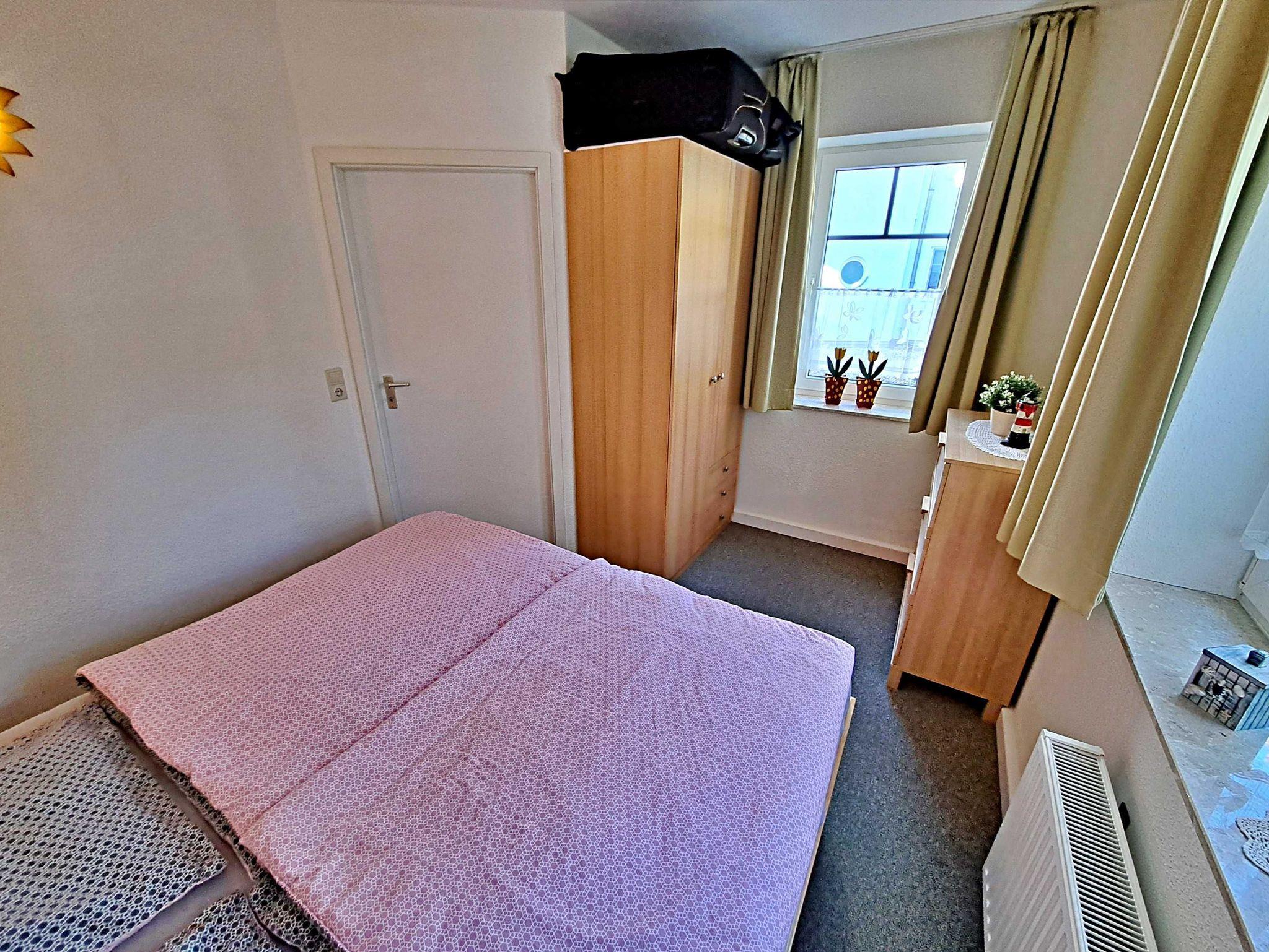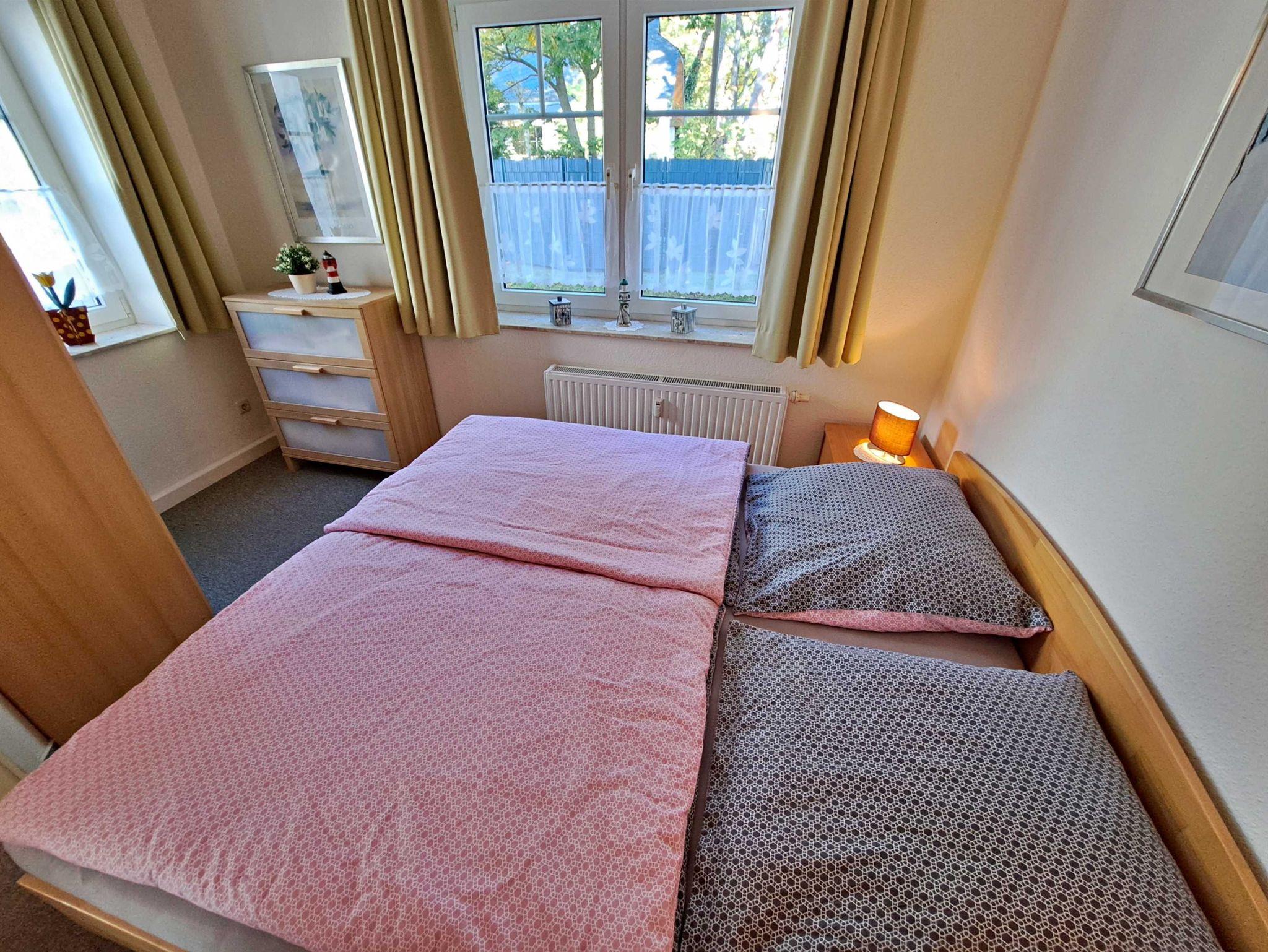 Herzlich willkommen in dieser gemütlichen und gepflegten Wohnung! Sie befindet sich im Erdgeschoss und besticht durch geschmackvoll eingerichtete Zimmer. Das Wohnzimmer und die Küche sind durch einen offenen Wanddurchbruch miteinander verbunden, was für eine einladende Atmosphäre sorgt. Im Wohnzimmer finden Sie neben einem Flachbild-TV auch zwei bequeme Sessel und ein Sofa, das sich bei Bedarf in ein Schlafsofa (1,30 m x 2,00 m) umwandeln lässt - ideal, wenn Sie getrennt schlafen möchten. Für die kleinen Gäste steht ein Kinderreisebett sowie ein Hochstuhl bereit, damit sich auch die Jüngsten wohlfühlen. Genießen Sie die warmen Sommermonate auf dem möblierten Balkon in Süd-West-Richtung, der vom Wohnzimmer aus zugänglich ist. Hier können Sie morgens Ihr Frühstück genießen oder den erlebnisreichen Tag bei einem Glas Wein ausklingen lassen. Die Küche ist modern ausgestattet mit einem Cerankochfeld, Spülmaschine, Kaffeemaschine, Wasserkocher und Toaster. An dem großen Esszimmertisch gibt es genügend Platz um die selbstgekochten Mahlzeiten zu genießen - auf der gemütlichen Eckbank und den zwei Stühlen. Das separate Schlafzimmer bietet Ihnen ein komfortables Doppelbett (Liegefläche 1,80 x 2,00 m) sowie einen Kleiderschrank mit ausreichend Ablagemöglichkeiten und Bügeln für Ihre Kleidung. Das Badezimmer ist mit einer Dusche und WC ausgestattet. Ihr Auto und Ihre Fahrräder sind sicher in der Tiefgarage untergebracht, die eine Einfahrthöhe von 2 m und eine Einfahrtsbreite von 2 m bietet.