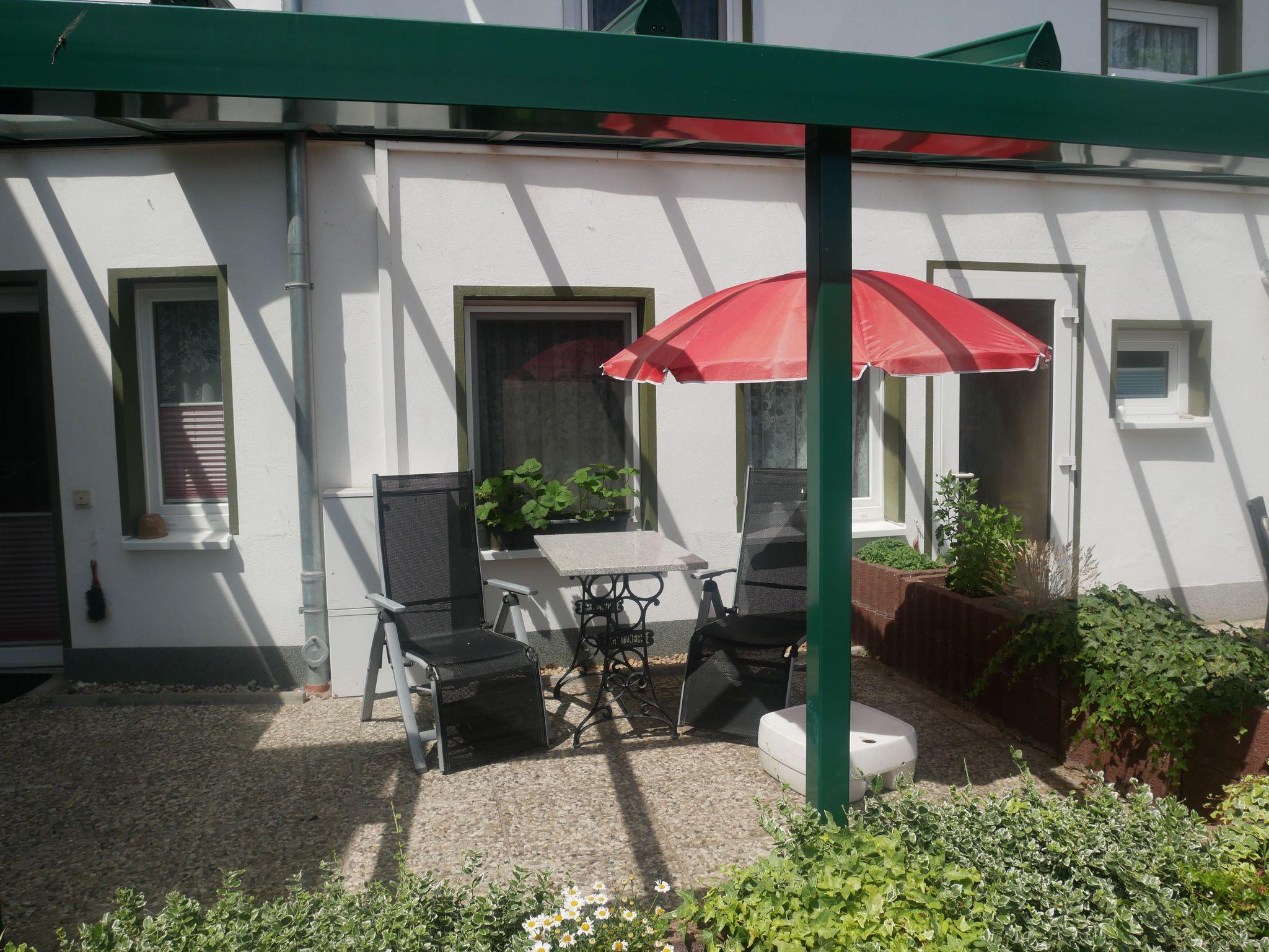 Die 1-Raum-Wohnung Rot befindet sich im Erdgeschoss und sie ist ca. 30 m² groß. Das kombinierte Wohn- und Schlafzimmer ist mit einem gemütlichen Doppelbett, Kleiderschrank, Sitzbereich und Flachbildfernseher ausgestattet. Die separate Küche verfügt über ein 2er-Cerankochfeld, Kühlschrank mit Gefriermöglichkeit, Kaffeemaschine, Wasserkocher, Toaster, Mikrowelle und Essbereich. Das Badezimmer verfügt über eine Dusche und einen Haartrockner. Zur Wohnung gehört eine möblierte Terrasse.