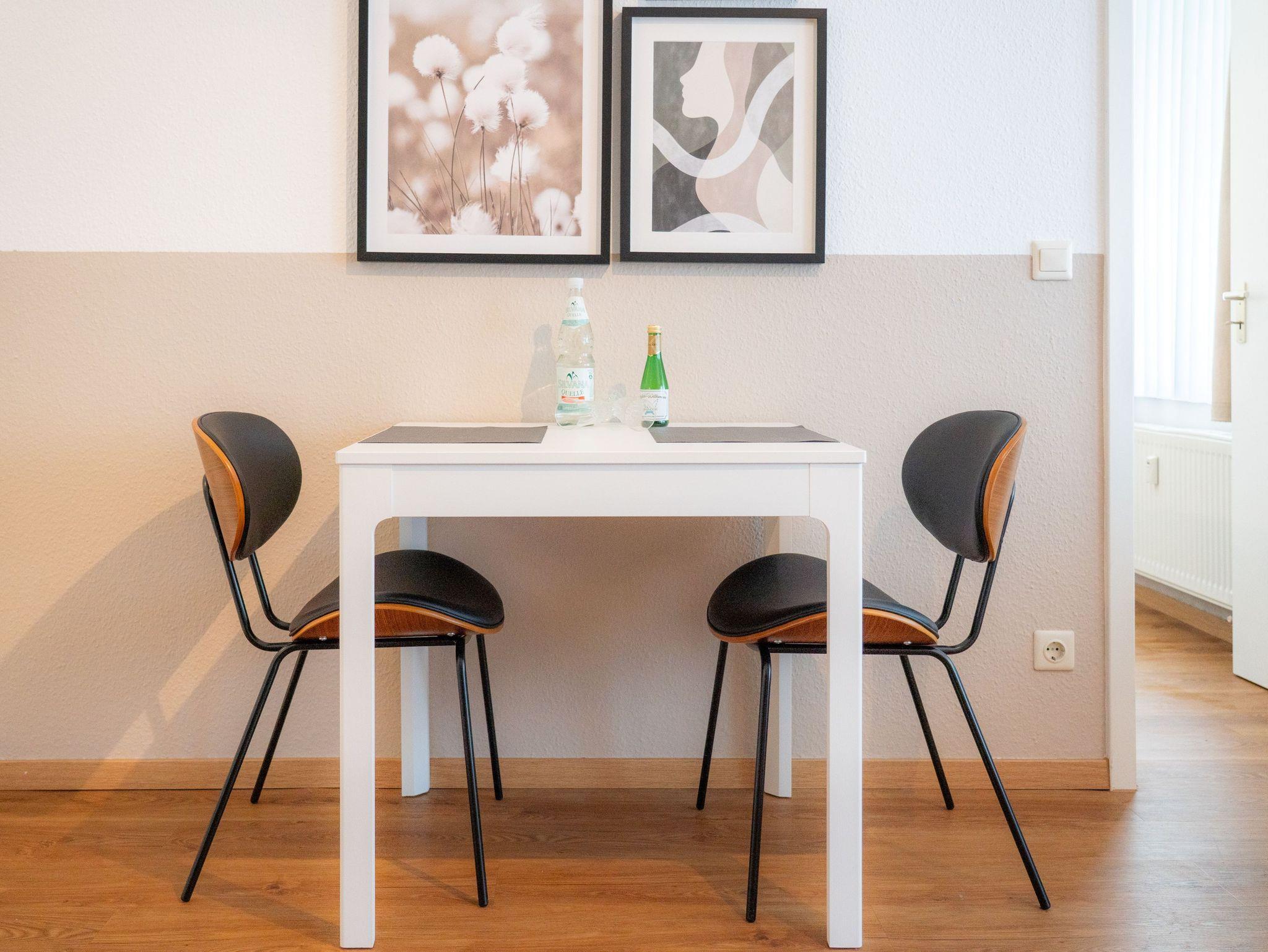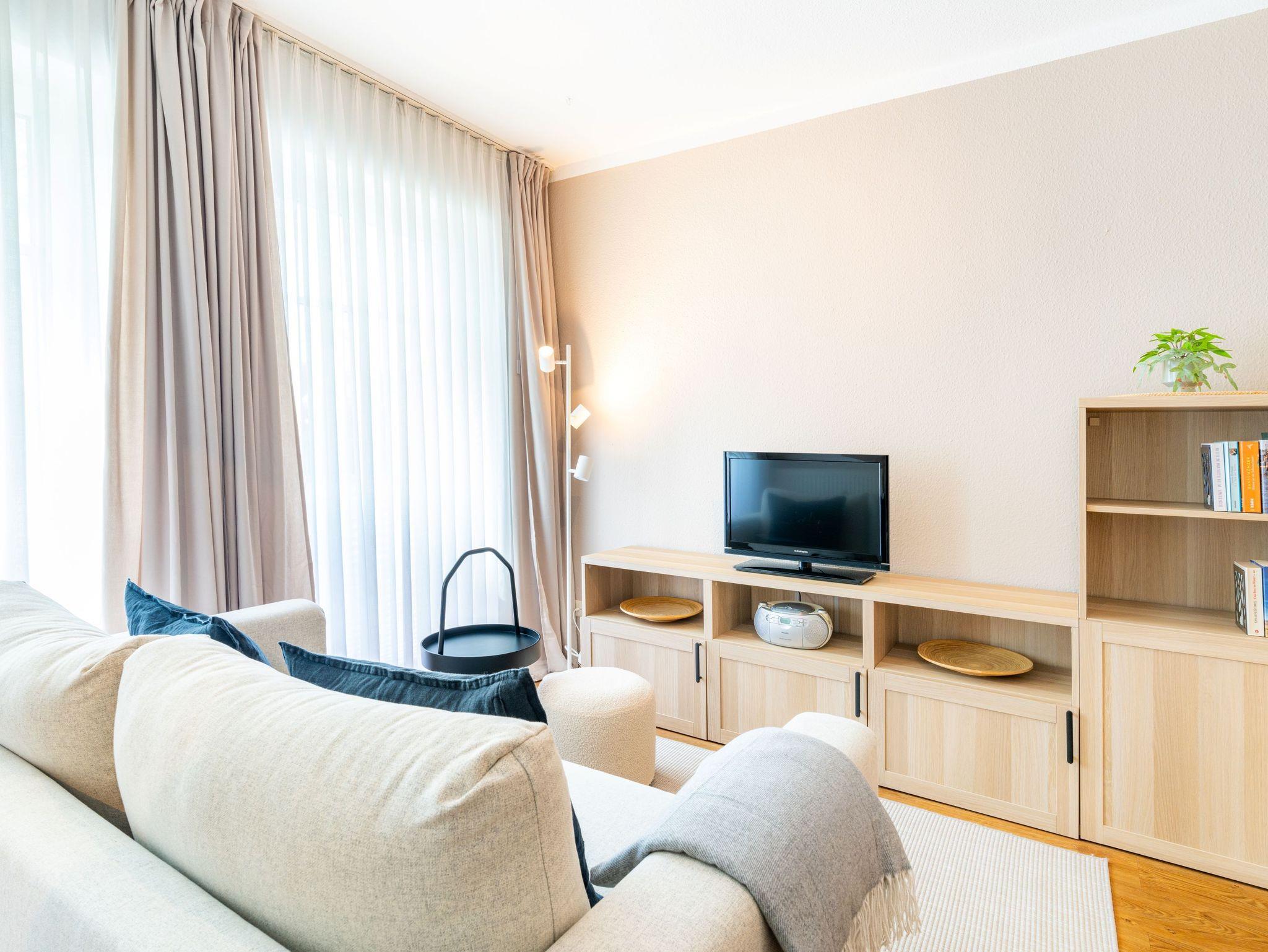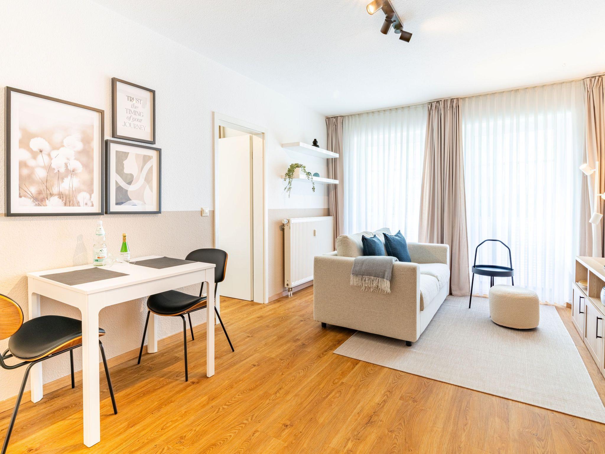 Die 35 qm große Wohnung befindet sich im Erdgeschoss und ist für zwei Personen ausgestattet. Die Wohnung verfügt über ein separates Schlafzimmer mit Boxspring-Bett, ein Wohnzimmer mit Essplatz sowie eine kleine Küchenzeile, ausgestattet mit Mikrowelle,Herd, Kühlschrank u.v.m.. Bad mit Dusche und WC.