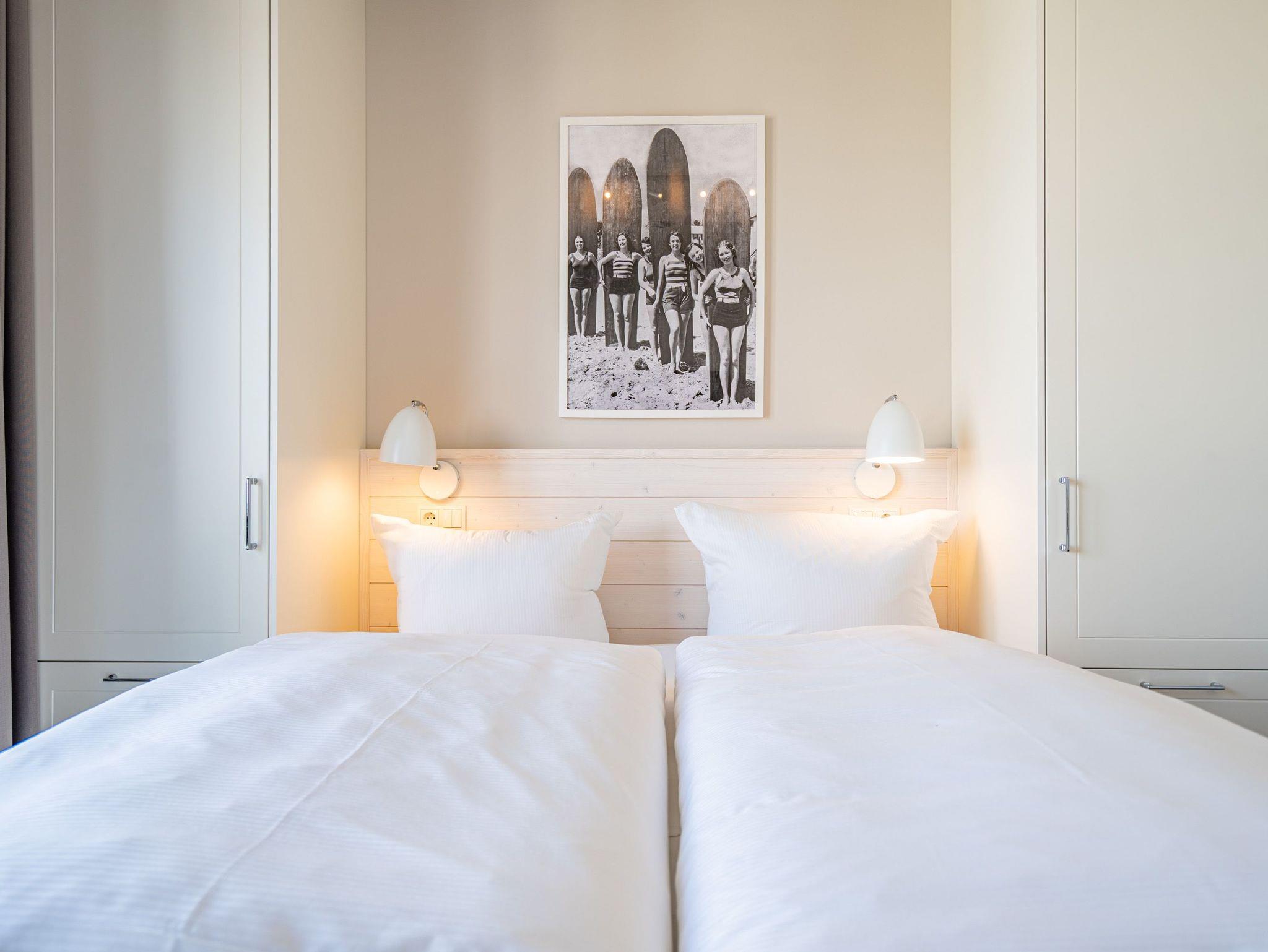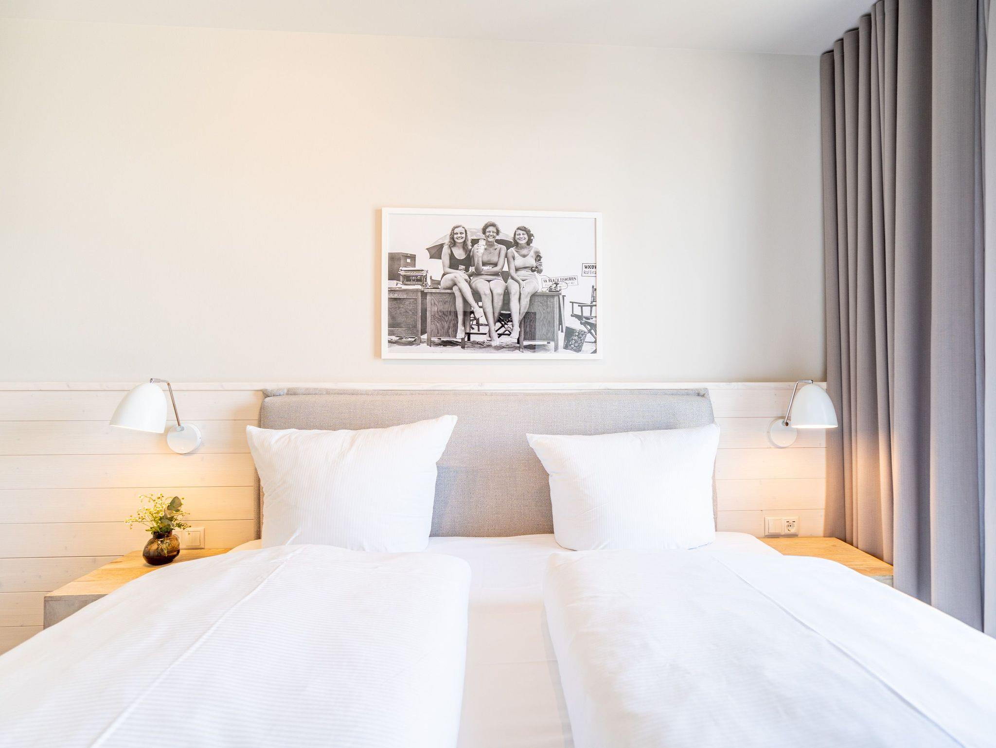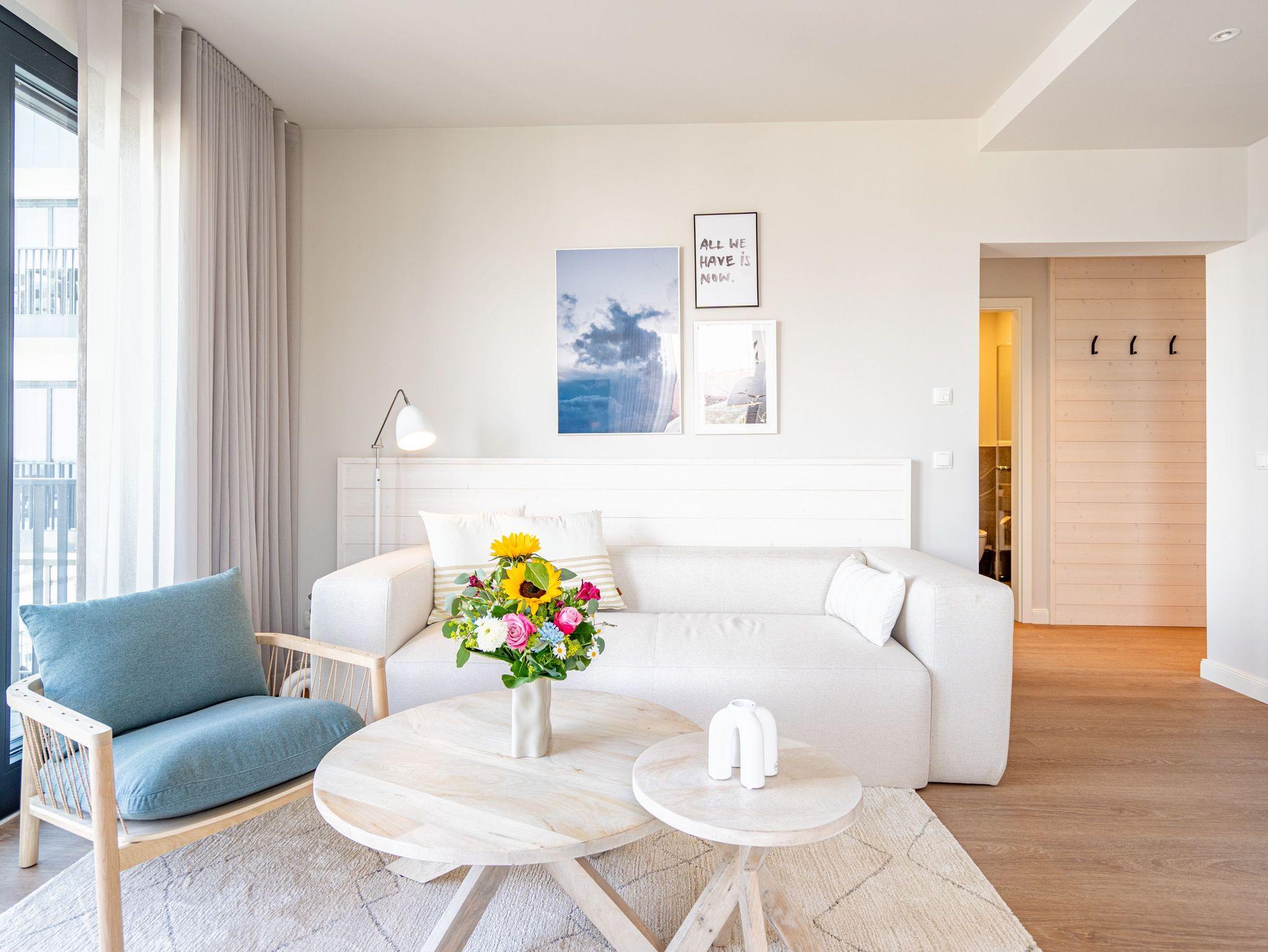 Die 2024 fertig gestellte Strandterrasse liegt direkt an der belebten Strandpromenade und bietet einen einzigartigen Ausblick auf die Grand Dame der historischen Seebrücken sowie die historische Konzertmuschel, einem beliebten Treffpunkt für Kunst und Kultur. Dahinter liegt die Ostsee ? ein Panorama, das zu den schönsten in den Kaiserbädern gehört. Es ist wie das Abtauchen in eine andere Zeit. In eine Zeit, in der man mit Stock, Sonnenschirm und Hut fürs „Sehen und gesehen werden“ über die Promenade schlenderte; aber auch in eine Zeit, in der ? damals wie heute ? Zeit einmal für eine kurze Weile keine Rolle spielt. Weil man angekommen ist im Loslassen, Entspannen und Genießen. Es ist dieser besondere Geruch nach Meeresluft und Freiheit, der in Erinnerung bleibt. Dazu die Bilder, die man mitnimmt. Von langen Strandspaziergängen, vom Lachen in fröhlich schäumenden Ostseewellen, von der Zeit in einem wunderschönen Urlaubsdomizil. Denn genau das ist die Strandterrasse mit ihren 56 modernen und exklusiven Ferienappartements direkt gegenüber der Ahlbecker Seebrücke. Die Ein-, Zwei- oder Dreizimmerwohnungen ? zwischen 40 und 70 Quadratmeter groß ? sind von einer Innenarchitektin gemeinsam mit unserem Erfahrungsschatz an Gästewünschen mit viel Liebe zum Detail und ganz individuell konzipiert worden. Entspannung und Wohlfühlen stehen an erster Stelle. Alles ist aufeinander abgestimmt und sorgt für eine gemütliche Atmosphäre. Wählen Sie zwischen einem Domizil in einem hellen, sandfarbenen Designkonzept oder einem Appartement mit anthrazitfarbenen Farbakzenten. Alle Appartements verfügen gleichermaßen über eine stilvolle und komfortable Einrichtung, die passgenau angefertigt worden ist, sowie über moderne Küchen und Bäder. Jedem Schlafzimmer ist ein eigenes Bad mit Dusche zugeordnet (außer App. B4.5). Die Appartements besitzen fast alle einen Balkon ? viele schauen sogar zur Ostsee hinaus. Die meisten Feriendomizile haben einen Elektrokamin und Infrarotsaunen. Im Erdgeschoss befindet sich ein separater Gemeinschaftsraum für Fahrräder. Außerdem besteht die Möglichkeit, im Gemeinschaftswaschraum 2 Waschmaschinen [&] Trockner zu nutzen. Ergänzt wird das Angebot durch eine Gemeinschaftssauna, die täglich von 11:00 bis 22:00 Uhr nutzbar ist. In der Tiefgarage (Einfahrtshöhe 2,03 Meter) steht für jede Wohnung 1 Pkw-Stellplatz zur Verfügung. Ist alles zur Zufriedenheit untergebracht? Dann kann der Urlaub ja beginnen. Und beim Blick vom Balkon über die Ostsee treffen sich zum Sonnenaufgang das Heute und das Damals. Gelassenheit legt sich beim Gang hinunter an den Strand auf die Seele. Jetzt darf die Zeit stehenbleiben.