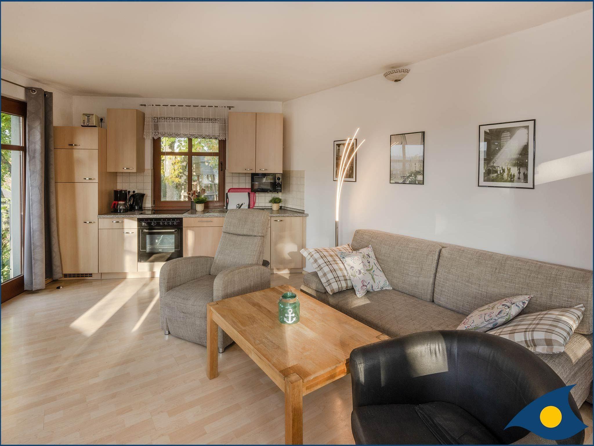 Die Wohnung bietet Ihnen einen großzügigen Wohnbereich mit voll ausgestatteter offener Küche und Schlafcouch sowie ein separates Schlafzimmer.