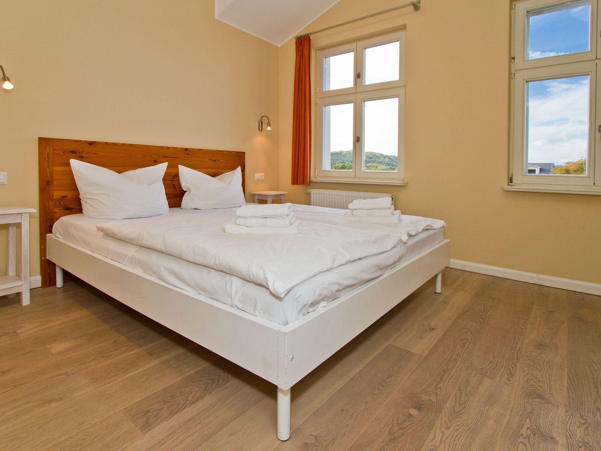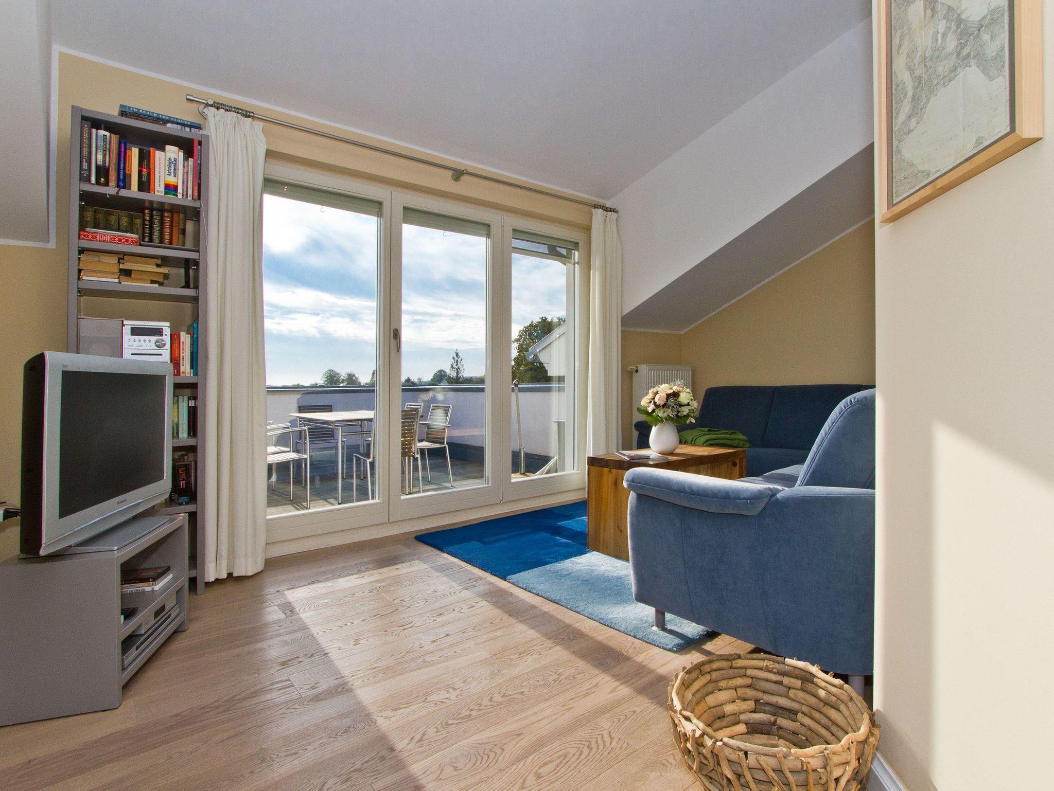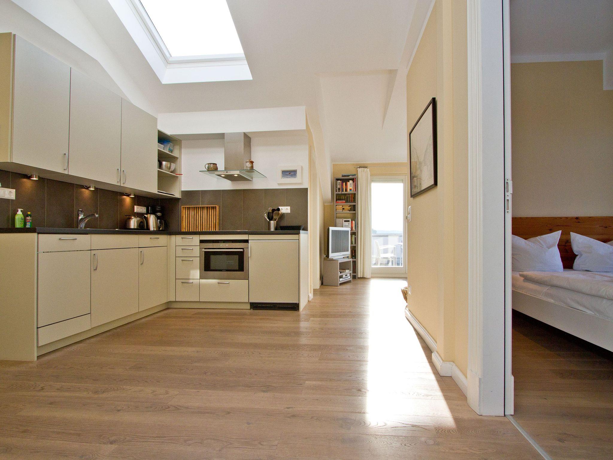 Residieren sie in der Penthousewohnung der Villa. Genießen sie den Meerblick und die Usedomer Sonne, lassen sie sich von der zeitlos-eleganten Einrichtung verwöhnen. Der aufwendig verlegte Naturholzboden, ein elegantes Bad sorgen für besten Wohnkomfort. Ein großer offener Wohnbereich mit Küche, ein zweites Wohnzimmer mit Schlafcouch, die historische Veranda mit Essbereich, ein Schlafzimmer mit Doppelbett und eine zur Südseite gelegene Dachterrasse bieten Platz für 2 bis 4 Personen. Für eine ungestörte Aufbettung im Wohnzimmer sorgt der zweite abgeschlossene Wohnbereich. Für kleine Gäste kann ein Kinderreisebett und ein Kinderhochstuhl (gegen Aufpreis) bestellt werden. Ein Pkw-Stellplatz steht am Haus unter dem Carport zur Verfügung.