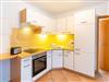 Die Küchenzeile verfügt über einen E-Herd, eine Kühl-/Gefrierkombination und ist mit Küchengeräten und Küchengeschirr vollständig ausgestattet.