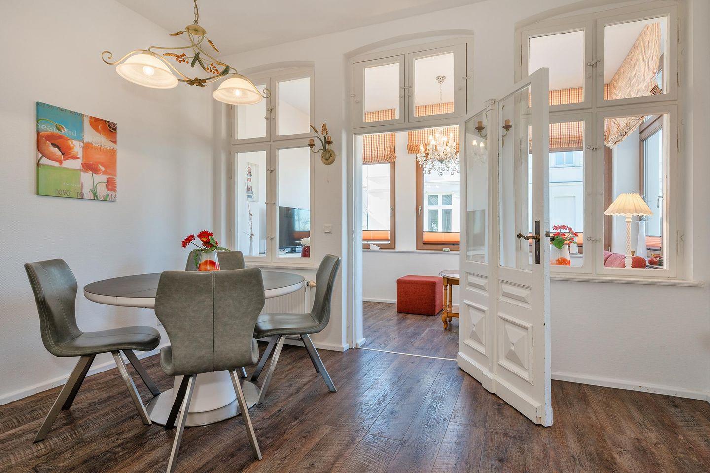 In perfekter Lage unmittelbar an der Strandpromenade in Seebad Ahlbeck begrüßt Sie diese schöne 3-Raum-Wohnung im Erdgeschoss des Hauses „Meerblick“. Auf 58 Quadratmetern und mit zwei Schlafzimmer finden hier bis zu vier Personen ihr Urlaubsdomizil.