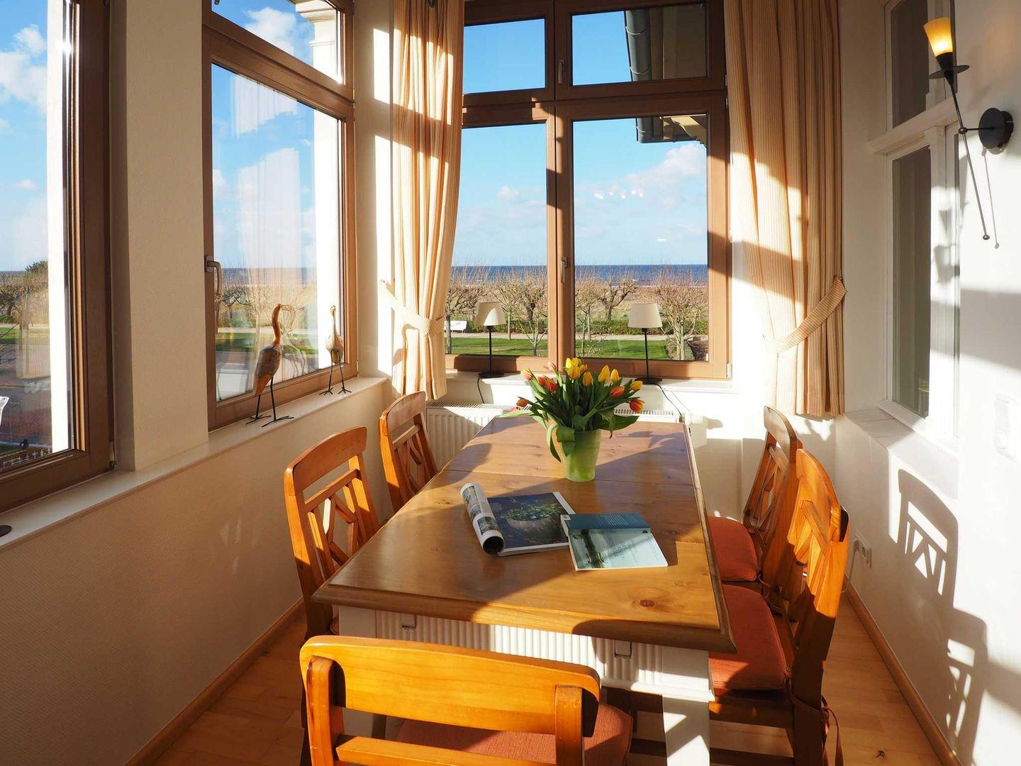 Genießen Sie die unvergleichliche Nähe zum Meer in der Ferienwohnung Haus Meerblick 07, gelegen in absoluter Bestlage unmittelbar an der historischen Strandpromenade des kaiserlichen Seebades Ahlbeck. Hier wohnen Sie in der ersten Reihe und können das maritime Flair Usedoms in vollen Zügen aufsaugen, denn der feinsandige Ostseestrand liegt Ihnen quasi zu Füßen. Die rund 61 m² große Ferienwohnung empfängt Sie in der ersten Etage des beliebten Appartementhauses und löst das Versprechen ihres Namens auf beeindruckende Weise ein: Bereits beim Betreten der Wohnung spüren Sie die Nähe zur Küste, doch das absolute Highlight ist der direkte Blick bis zur Ostsee, den Sie sowohl von der geschützten Loggia als auch von einem der beiden Schlafzimmer aus genießen können. Starten Sie Ihren Tag mit dem Blick auf die glitzernden Wellen oder lassen Sie ihn bei einem Glas Wein und dem Rauschen der Brandung ausklingen.