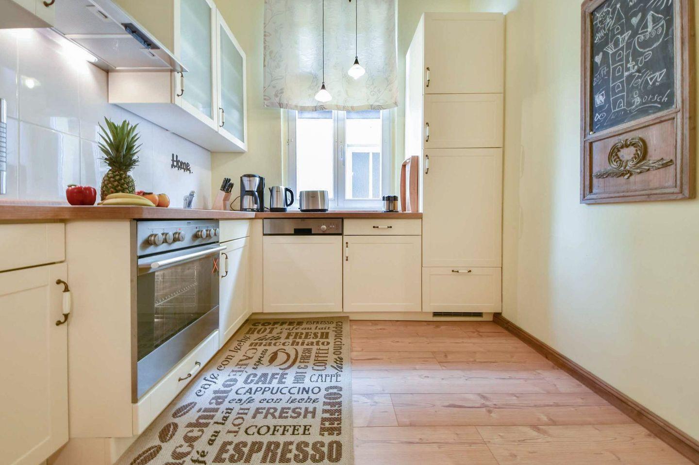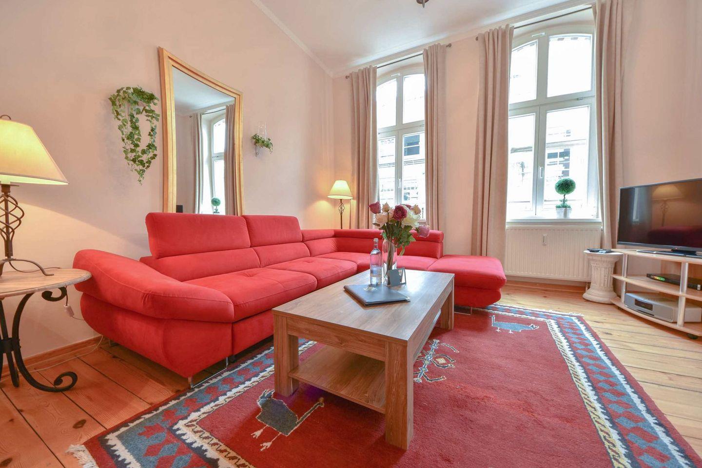 Der geschlossene Küchenbereich ist mit modernen Geräten wie Ceran-Kochfeld, Backofen, Mikrowelle, Geschirrspüler und einem Kühlschrank mit Gefrierfach voll ausgestattet und ermöglicht die Zubereitung Ihrer Lieblingsspeisen in entspannter Urlaubsatmosphäre. Der angrenzende Wohnbereich ist großzügig und stilvoll eingerichtet. Eine große Couch mit Schlaffunktion (Liegefläche 200?cm x 130?cm) bietet Platz für bis zu zwei zusätzliche Gäste. Für gemütliche Abende stehen ein TV-Gerät und ein DVD-Player zur Verfügung – perfekt zum Abschalten nach einem aktiven Tag am Meer oder beim Erkunden der Sehenswürdigkeiten der Insel.