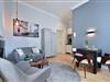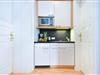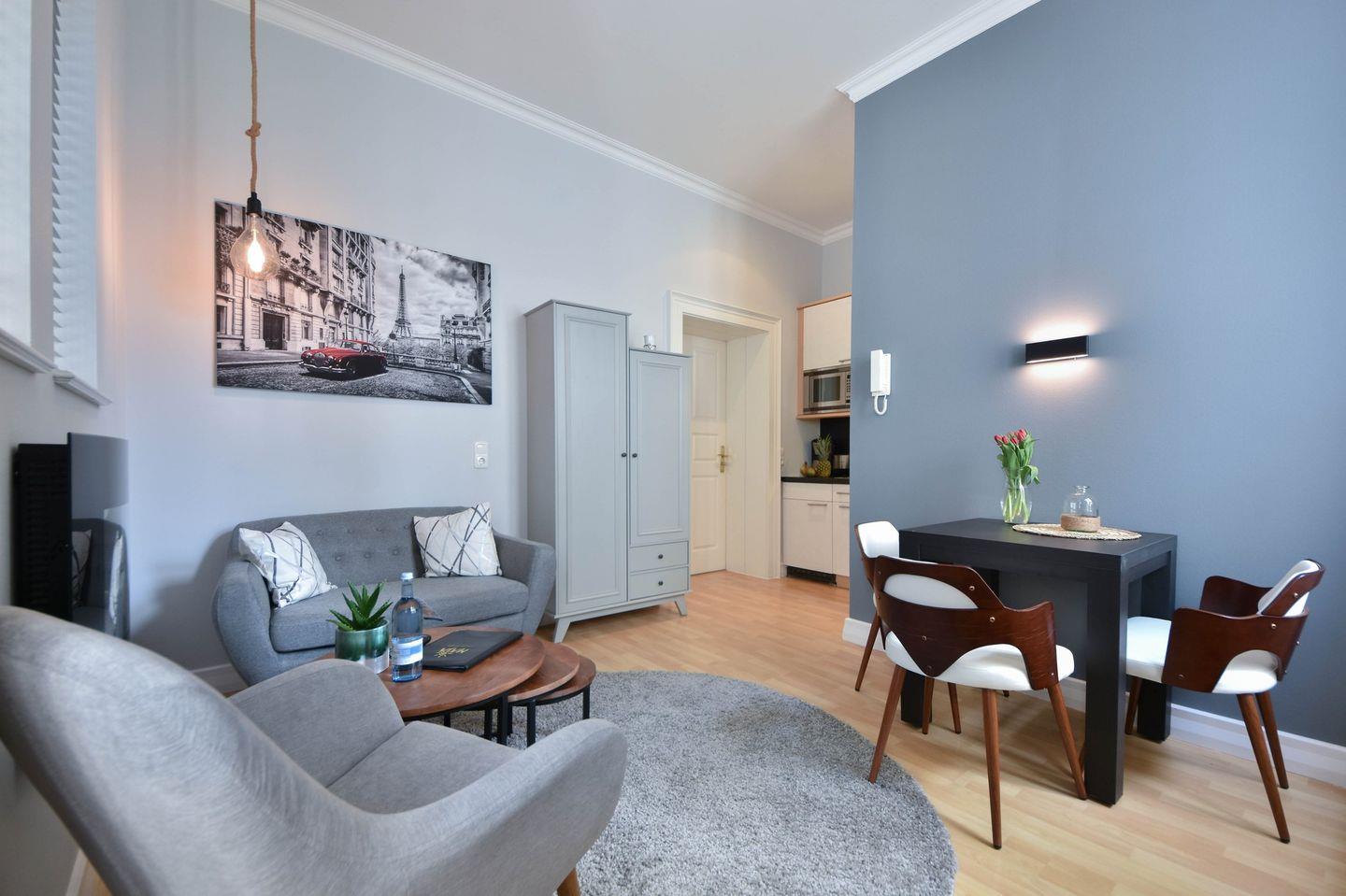 Moderne Farben und ein angenehmes Ambiente in hervorragender Lage des Seebades Ahlbeck erwarten Sie! Diese 30 Quadratmeter große Einraum-Ferienwohnung wurde im Jahre 2022 komplett renoviert und erstrahlt nun in neuem Glanz. Der kombinierte Wohn- und Schlafraum ist ausgestattet mit einer gemütlichen Sitzecke sowie einem kleinen Esstisch, Flat-TV und einem Radio. Für angenehme Abende sorgt ein Elektro-Kamin. Die hohen und modernen Fenster der alten Villa spenden viel Licht. Eine Pantryküche mit 2 Cerankochfeldern, Mikrowelle und Kühlschrank mit Gefrierfach ist halboffen im Wohnraum vorhanden. Sichtgeschützt hinter einer halbhohen Wand im Wohnraum befindet sich ein Boxspring-Doppelbett sowie ein Kleiderschrank. Das Bad ist mit Dusche und Waschbecken sowie WC ausgestattet. Ein Parkplatz und WLAN sind kostenfrei vorhanden.