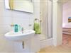 Das Badezimmer ist modern und zweckmäßig mit Dusche, Waschbecken und WC eingerichtet. Für einen sorgenfreien Start in den Urlaub sind die Betten bei Anreise bereits bezogen, frische Handtücher liegen bereit, und eine Grundausstattung mit den wichtigsten Haushaltsutensilien steht zur Verfügung. Die liebevolle Einrichtung und das wohnliche Ambiente machen die Villa Magdalena 07 zu einem idealen Rückzugsort für eine Auszeit am Meer.