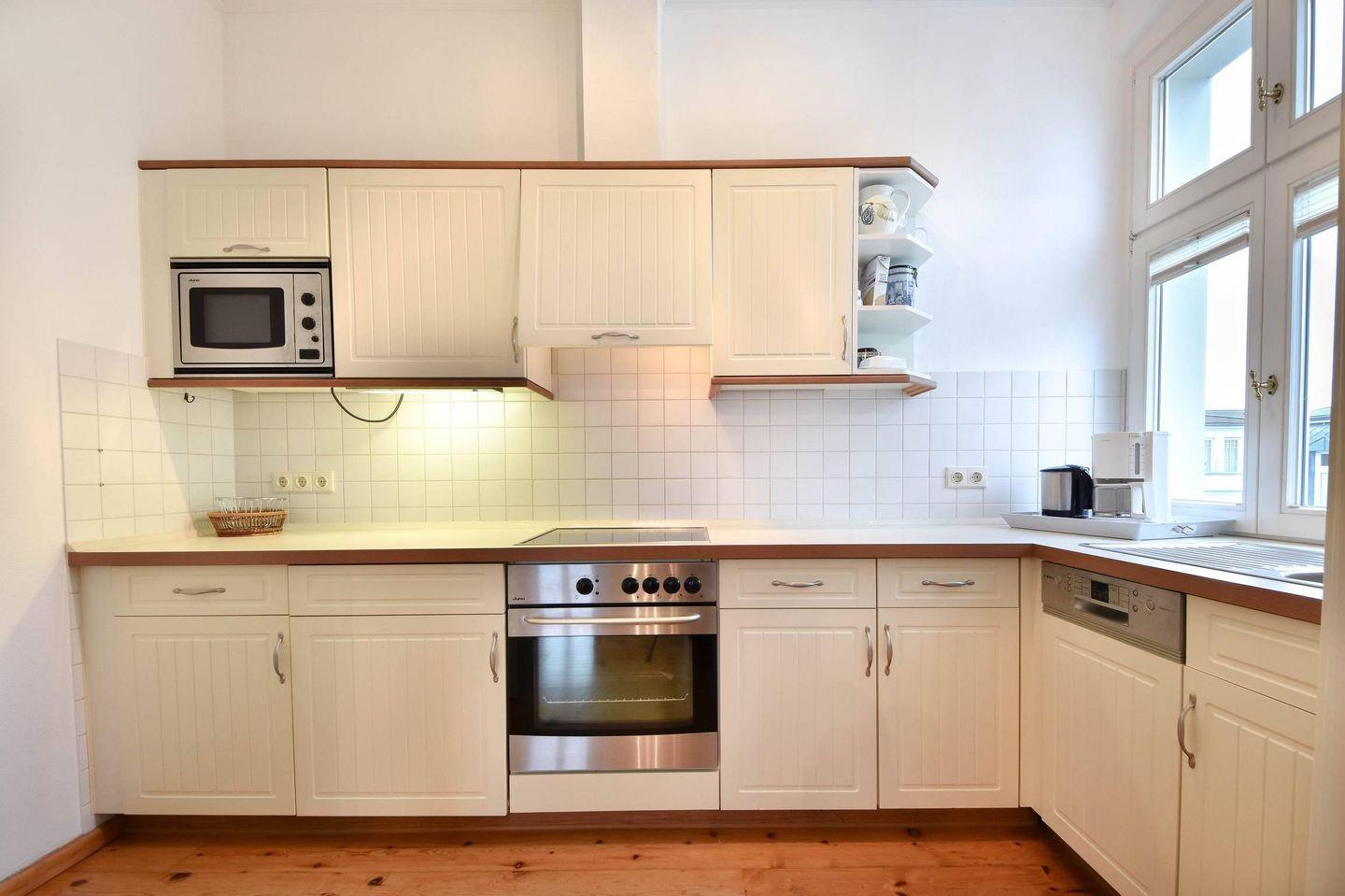 Der offene Wohnraum ist durch eine Schiebetür von der Küche abgetrennt. Sie ist voll ausgestattet und verfügt über Backofen und Mikrowelle, Cerankochfeld und Geschirrspüler. Der Wohnraum ist mit einer Couch und einem Lesesessel ausgestattet. Die helle Loggia wird schnell Ihr Lieblingsplatz werden. Am Esstisch können Sie bei Meerblick frühstücken und gemütlich in den Tag starten. Am Abend lassen Sie bei Wellenrauschen den Tag ausklingen.