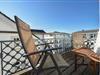 Die Wohnung besitzt zwei Schlafzimmer. Das größere der beiden Schlafzimmer verfügt über ein Doppelbett und einen massiven Kleiderschrank. Im kleineren Schlafzimmer befinden sich zwei Einzelbetten und der Zugang zum West-Balkon. Durch die Häuser können Sie hier einen Blick auf die Ostsee erhaschen und sonnige Abende genießen.