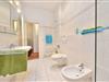 Ein großes Badezimmer mit Badewanne und Duschabtrennung sowie Toilette und Bidet rundet das Angebot ab. Für unsere kleinen Gäste stehen ein Kinderreisebett (ohne Wäsche) und ein Kinderhochstuhl bereit.