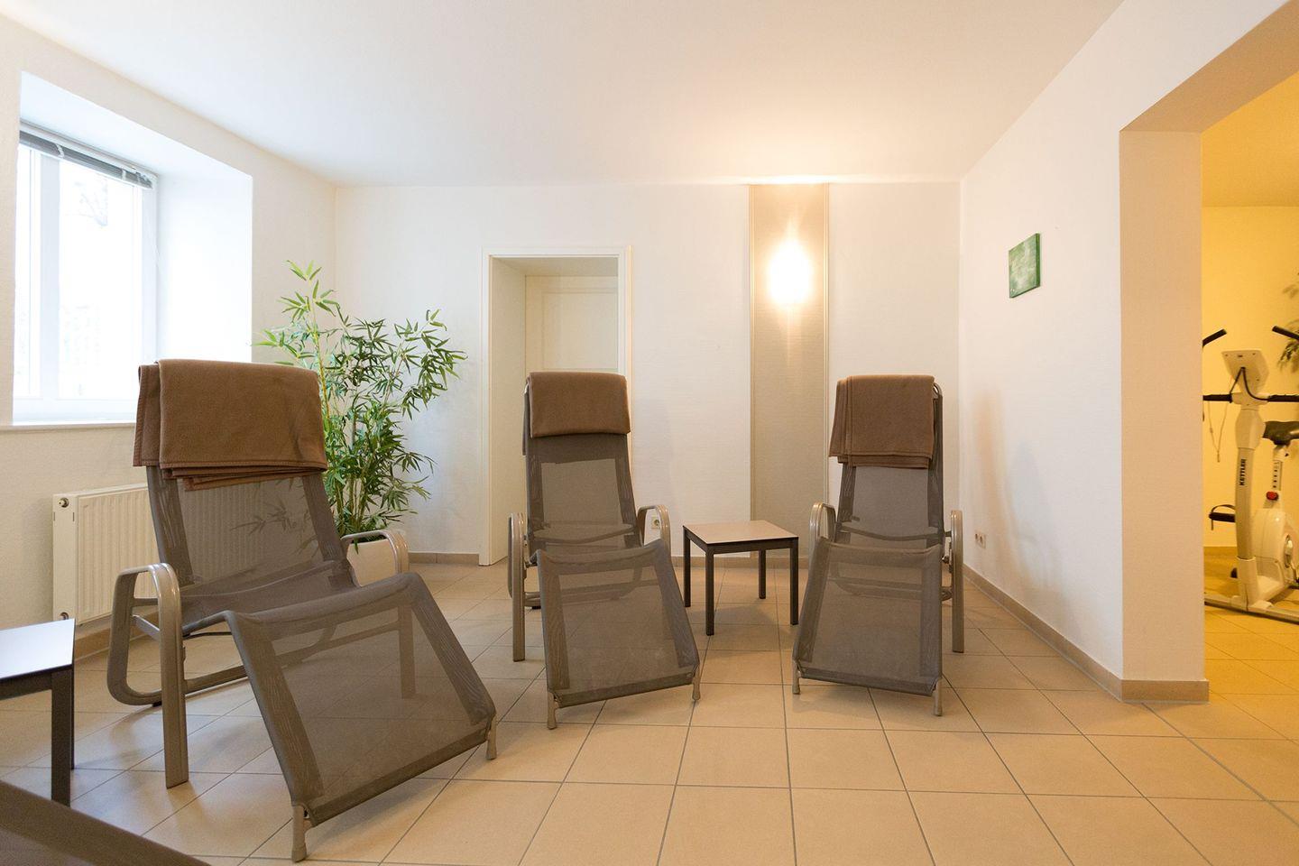 WLAN ist vorhanden. Als besonderes Highlight können unsere Gäste Sauna und Dampfbad im Haus kostenfrei nutzen. Für die kleinen Urlauber wurde ein eigenes Spielzimmer in der Villa eingerichtet. Ein Pkw-Stellplatz befindet sich am Haus (überdacht - Einfahrtshöhe 2 Meter). Waschmaschine und Trockner stehen gegen Gebühr zur Verfügung.