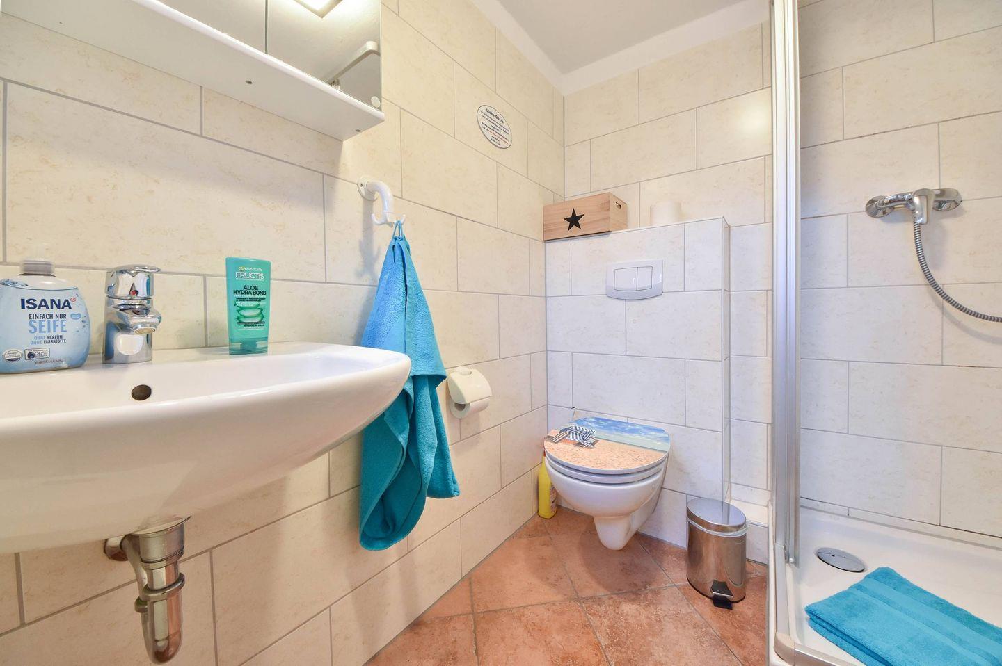 Das Fenster im Schlafzimmer kann verdunkelt werden. Ein großer Kleiderschrank bietet ausreichend Stauraum für Ihre Garderobe. Das kleine Duschbad ist vom Schlafzimmer aus begehbar und verfügt über ein Fenster. Die Dusche hat eine niedrige Einstiegshöhe.