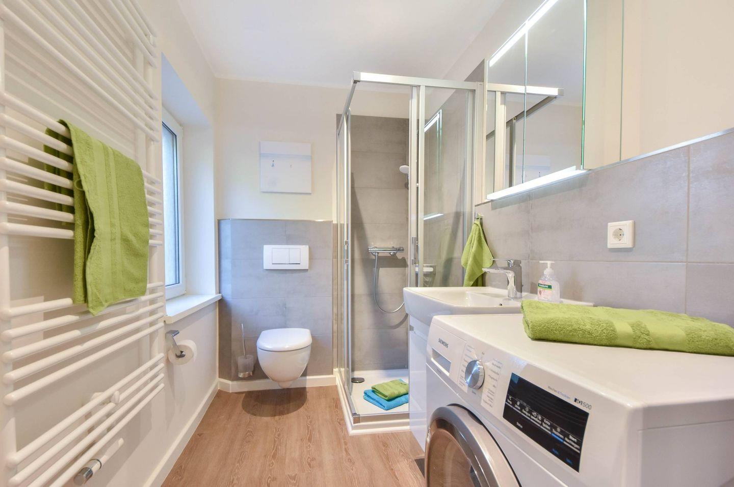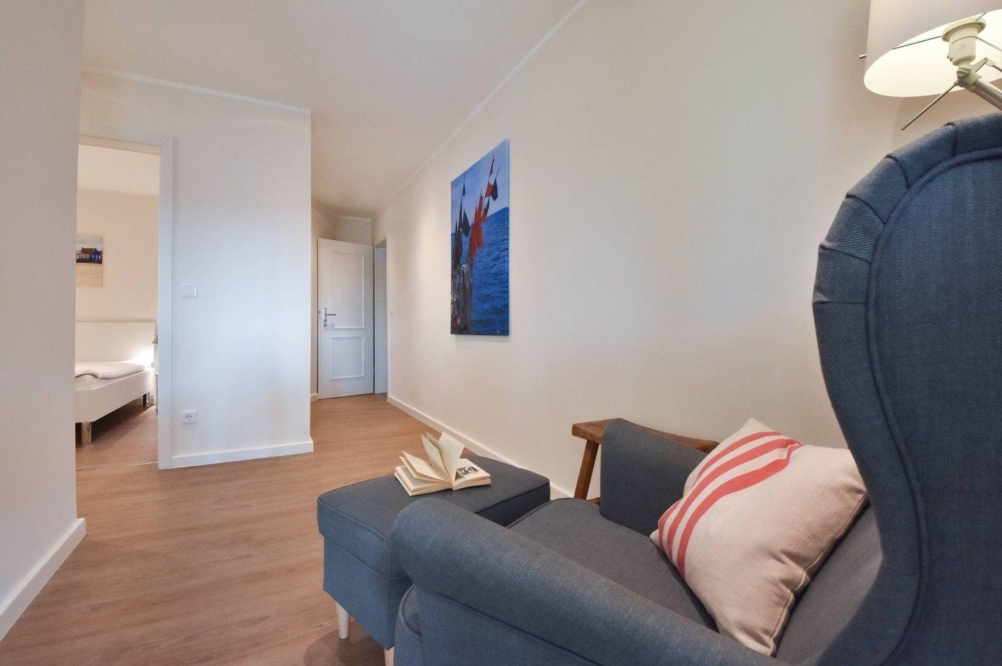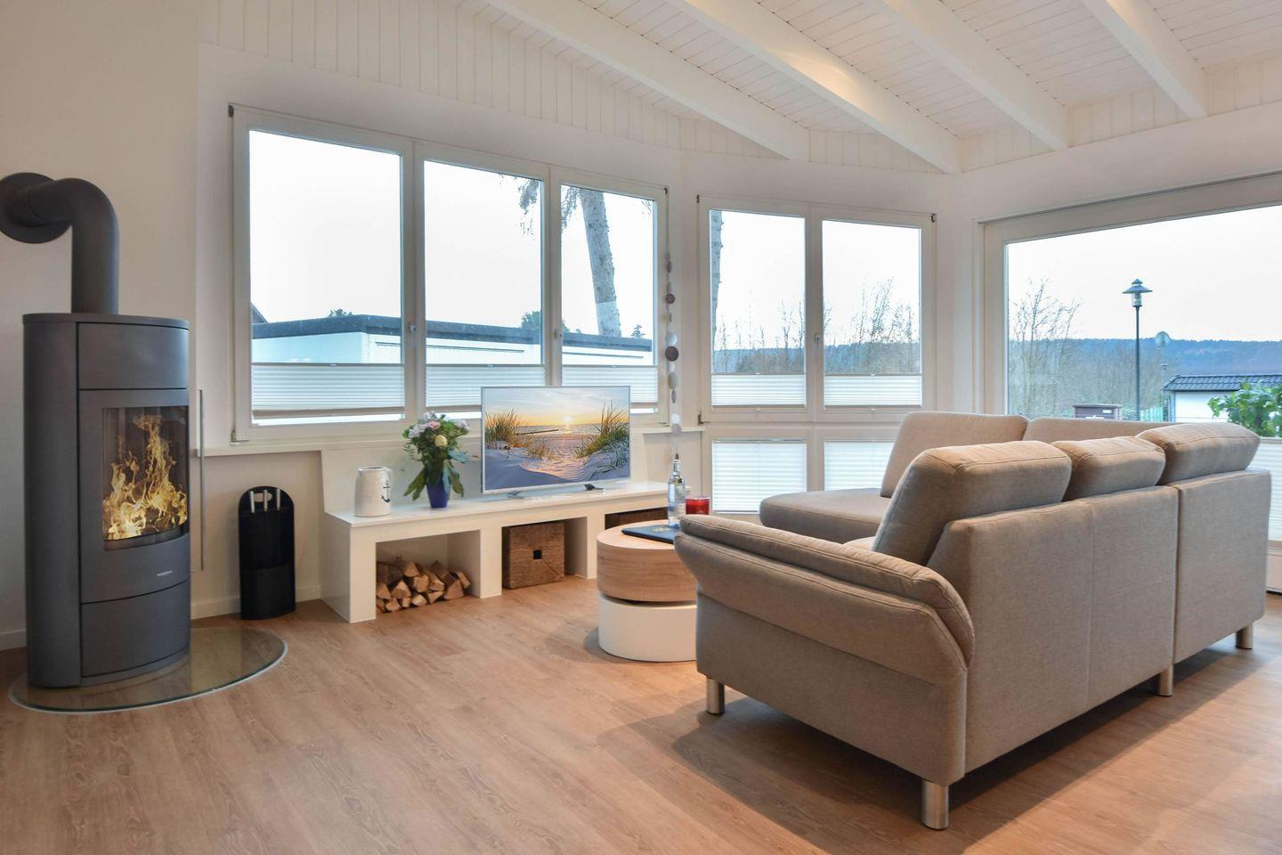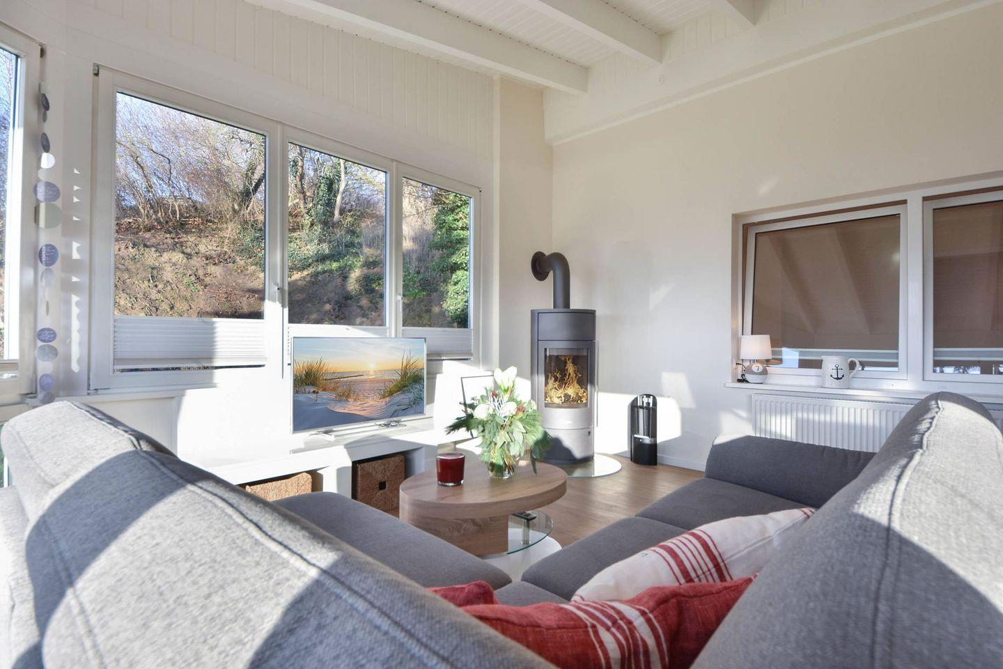 Das Haus besteht aus zwei separaten Wohnungen, die hervorragend gemeinsam genutzt werden können und dennoch die Möglichkeit bieten, sich am Ende des Tages zurück zu ziehen. Jede Wohnung verfügt über einen eigenen Eingang, einen offenen Wohnbereich mit großzügiger Sitzlandschaft und eigenem Kamin, eine offene und voll ausgestattete Küche samt Mikrowelle, Backofen und Herd, zwei Schlafzimmer mit Doppelbett und je ein Badezimmer mit Tageslicht, Dusche und Waschtrockner. So können hier in jeder Einheit vier (und insgesamt acht) Erwachsene komfortabel Ihren Urlaub verbringen. Dank der großen Fensterfronten im Wohnbereich, die komplett geöffnet werden können, entsteht ein zweiter Zugang zum Hof und die Möglichkeit, beide Wohnungen geschickt für Besuch der jeweils Anderen zu öffnen. Die Fenster im hinteren Bereich des Hauses sind mit Mückenschutz ausgestattet, sodass Sie zu jeder Zeit die Fenster öffnen können. Für ausreichend Sichtschutz und Privatsphäre sorgen die Plissees an allen Fensterfronten.