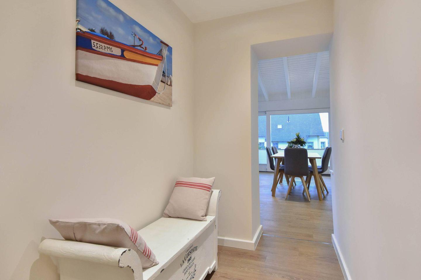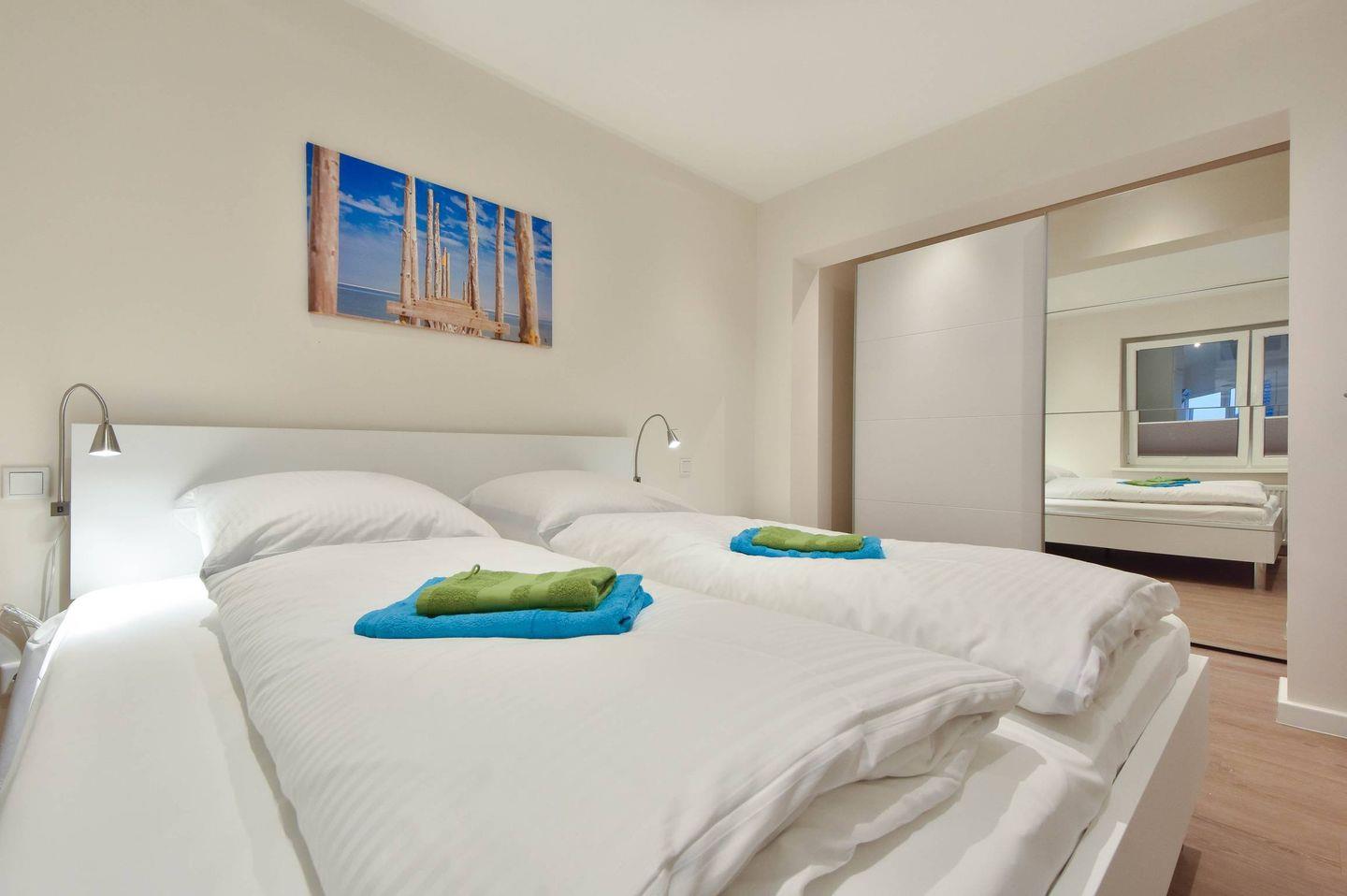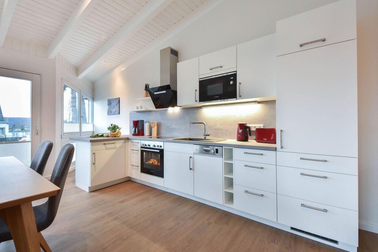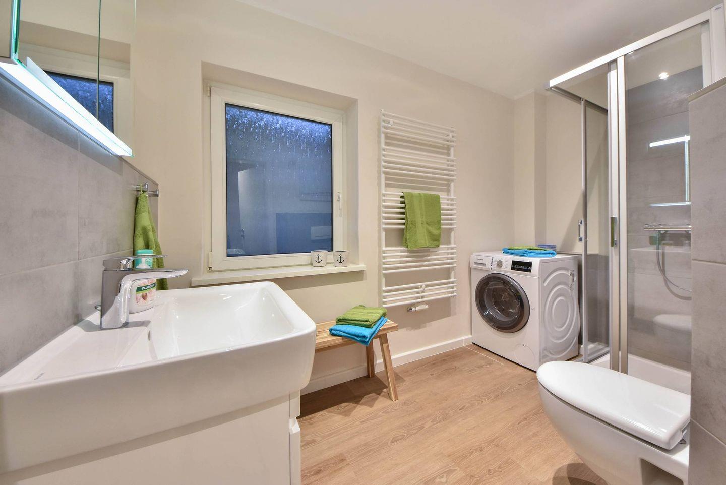 Das Haus besteht aus zwei separaten Wohnungen, die hervorragend gemeinsam genutzt werden können und dennoch die Möglichkeit bieten, sich am Ende des Tages zurück zu ziehen. Jede Wohnung verfügt über einen eigenen Eingang, einen offenen Wohnbereich mit großzügiger Sitzlandschaft und eigenem Kamin, eine offene und voll ausgestattete Küche samt Mikrowelle, Backofen und Herd, zwei Schlafzimmer mit Doppelbett und je ein Badezimmer mit Tageslicht, Dusche und Waschtrockner. So können hier in jeder Einheit vier (und insgesamt acht) Erwachsene komfortabel Ihren Urlaub verbringen. Dank der großen Fensterfronten im Wohnbereich, die komplett geöffnet werden können, entsteht ein zweiter Zugang zum Hof und die Möglichkeit, beide Wohnungen geschickt für Besuch der jeweils Anderen zu öffnen. Die Fenster im hinteren Bereich des Hauses sind mit Mückenschutz ausgestattet, sodass Sie zu jeder Zeit die Fenster öffnen können. Für ausreichend Sichtschutz und Privatsphäre sorgen die Plissees an allen Fensterfronten.