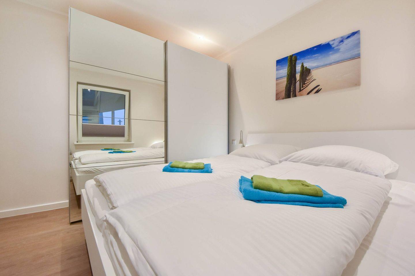 Im Außenbereich stehen zwei möblierte Terrassen zur Verfügung, die Sie je nach Tageszeit und Sonnenstand nutzen können. Ein Baby-Reisebett inklusive Matratze aber ohne Wäsche sowie ein Kinderhochstuhl sind in der Wohnung vorhanden. Diese können Sie sich jederzeit selbst nehmen und nutzen.