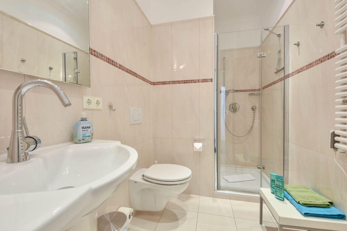 Ein eigener Stellplatz in der Tiefgarage des Hauses (die maximale Einfahrtshöhe beträgt 1,96 Meter) ist inklusive. Das WLAN ist Bestandteil der Wohnung. Den Keller der Villa Undine erreichen Sie sowohl über Treppen als auch entspannt mit dem Aufzug. Dort befindet sich der Waschraum, wo Sie Waschmaschine und Trockner gegen Gebühr nutzen können. Fahrradständer befinden sich ebenfalls am Haus.