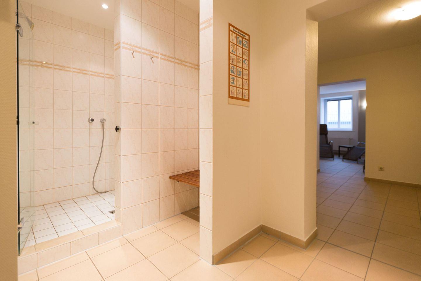 Im Untergeschoss des Altbaus befindet sich ein für Sie kostenfrei zu nutzender Wellnessbereich mit Sauna, Dampfbad, sowie einem kleinen Fitnessraum. Über die hauseigene Rezeption erhalten Sie Waschmarken zur Nutzung der Waschmaschinen und Trockner in der Villa. Sie können Ihre Fahrräder sicher im abschließbaren Fahrradraum unterbringen. Ihren Pkw parken Sie auf einem der überdachten Stellplätze am Haus (Einfahrtshöhe 2 Meter).