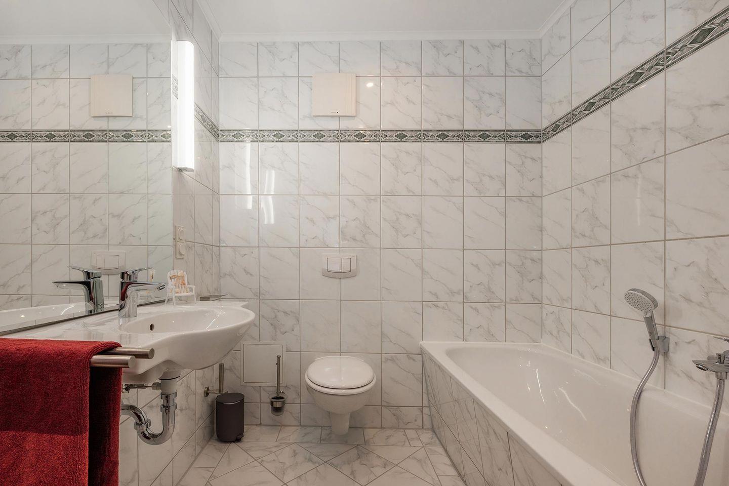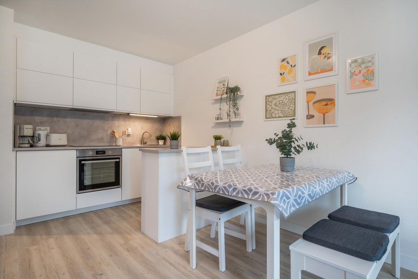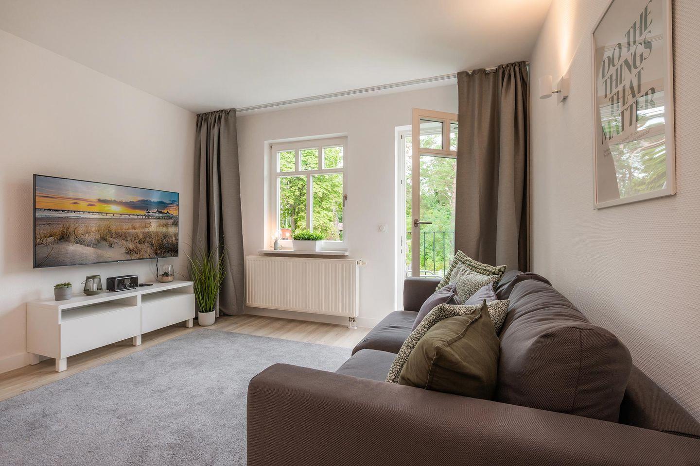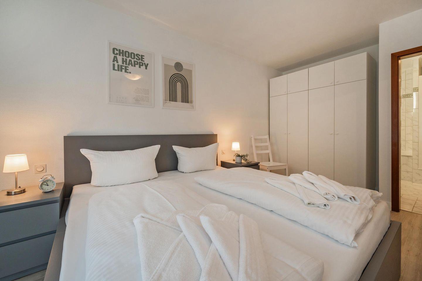Die 44 Quadratmeter große Wohnung besticht durch eine moderne Einrichtung. Dank vieler kleiner Details wurde eine wohnliche Atmosphäre erschaffen. Das Wohnzimmer ist mit einer Schlafcouch, wo eine dritte Person ihren Schlafplatz findet, und einem großen Flat-TV eingerichtet. Von hier aus haben Sie Zugang zum anliegenden südwestlich ausgerichteten Balkon. Hier können Sie Ihren nachmittäglichen Kaffee bei herrlichstem Sonnenscheinwetter genießen. Die Küche ist offen zum Wohnzimmer gestaltet und mit wichtigen Küchengeräten wie einem Induktionsherd, Backofen, Spülmaschine, Filterkaffeemaschine, Toaster und Wasserkocher eingerichtet. In geselliger Runde lässt es sich wunderbar an den großen Esstisch mit Bestuhlung und Sitzbank dinieren. Neben einem großen Bad, ausgestattet mit Badewanne, Dusche, WC und Waschbecken, werden Sie noch ein weiteres Gäste-WC in der Wohnung vorfinden. Das Schlafzimmer ist mit einem großzügigen Doppelbett (1,80 x 2,00 Meter Liegefläche) und einem Kleiderschrank eingerichtet, welcher ausreichend Platz für Ihre Garderobe bietet.