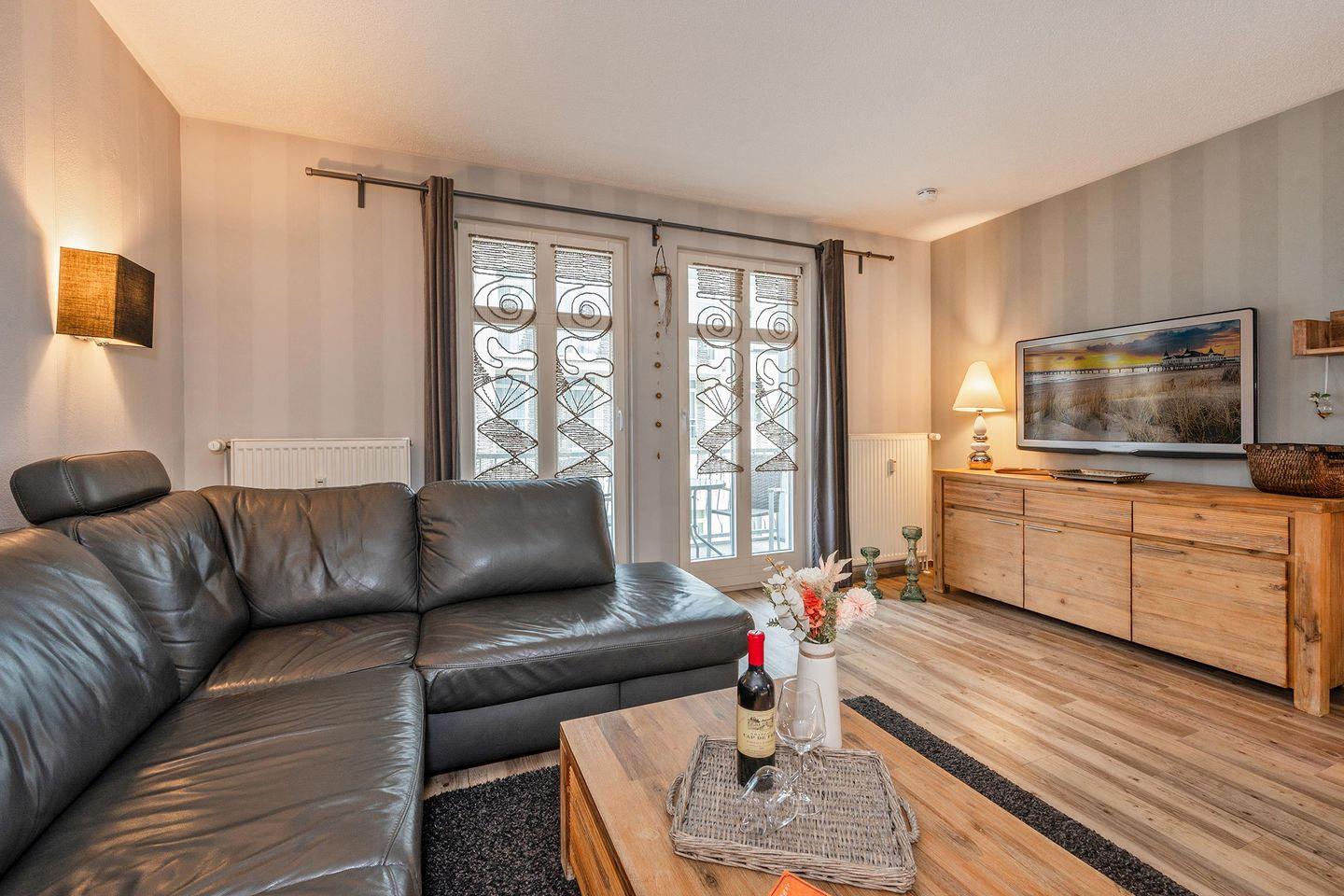 Die Ferienwohnung Haus Miramar 10 im Seebad Ahlbeck ist der perfekte Rückzugsort für alle, die einen entspannten Urlaub in unmittelbarer Nähe zur Ostsee verbringen möchten. Mit einer Größe von 47 m² befindet sich die Wohnung im ersten Obergeschoss eines gepflegten Hauses und bietet sowohl Komfort als auch Gemütlichkeit.