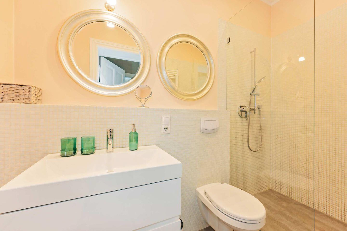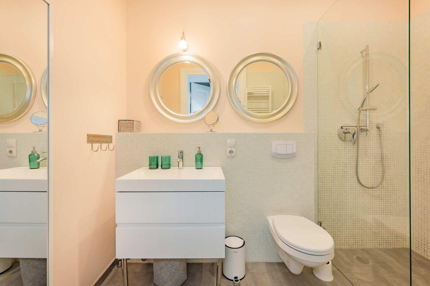 Das moderne Bad überzeugt mit stilvollen Materialien und einer bodengleichen Dusche. Eine Gsrundausstattung für den täglichen Bedarf erleichtert den Start in den Urlaub. Zusätzlich stehen ein kostenfreier WLAN-Zugang, ein eigener Stellplatz (bitte beachten Sie die schmale, ca. 2 m breite Zufahrt) sowie Waschmaschine und Trockner zur Gemeinschaftsnutzung zur Verfügung. Ein abschließbarer Fahrradkeller ergänzt das Angebot ideal für aktive Gäste, die die Insel auf zwei Rädern erkunden möchten.