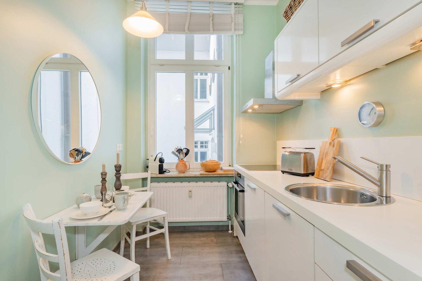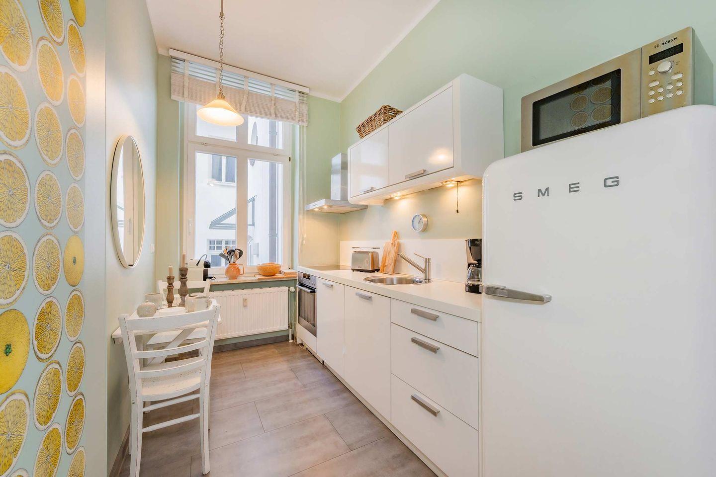 Die 72 m² große Wohnung bietet großzügigen Raum für erholsame Urlaubstage. Die separate Küche ist voll ausgestattet und erfüllt höchste Ansprüche: Backofen, Induktionskochfeld, Spülmaschine, Mikrowelle, Kaffeemaschine und eine zusätzliche Nespresso-Maschine machen das Zubereiten von Mahlzeiten zum Genuss. Der sonnige Außenbereich ist ein besonderes Highlight. Die Terrasse mit Südost-Ausrichtung lädt mit gemütlicher Bestuhlung und Sonnenschirm bereits am Morgen zu entspannten Stunden im Freien ein.