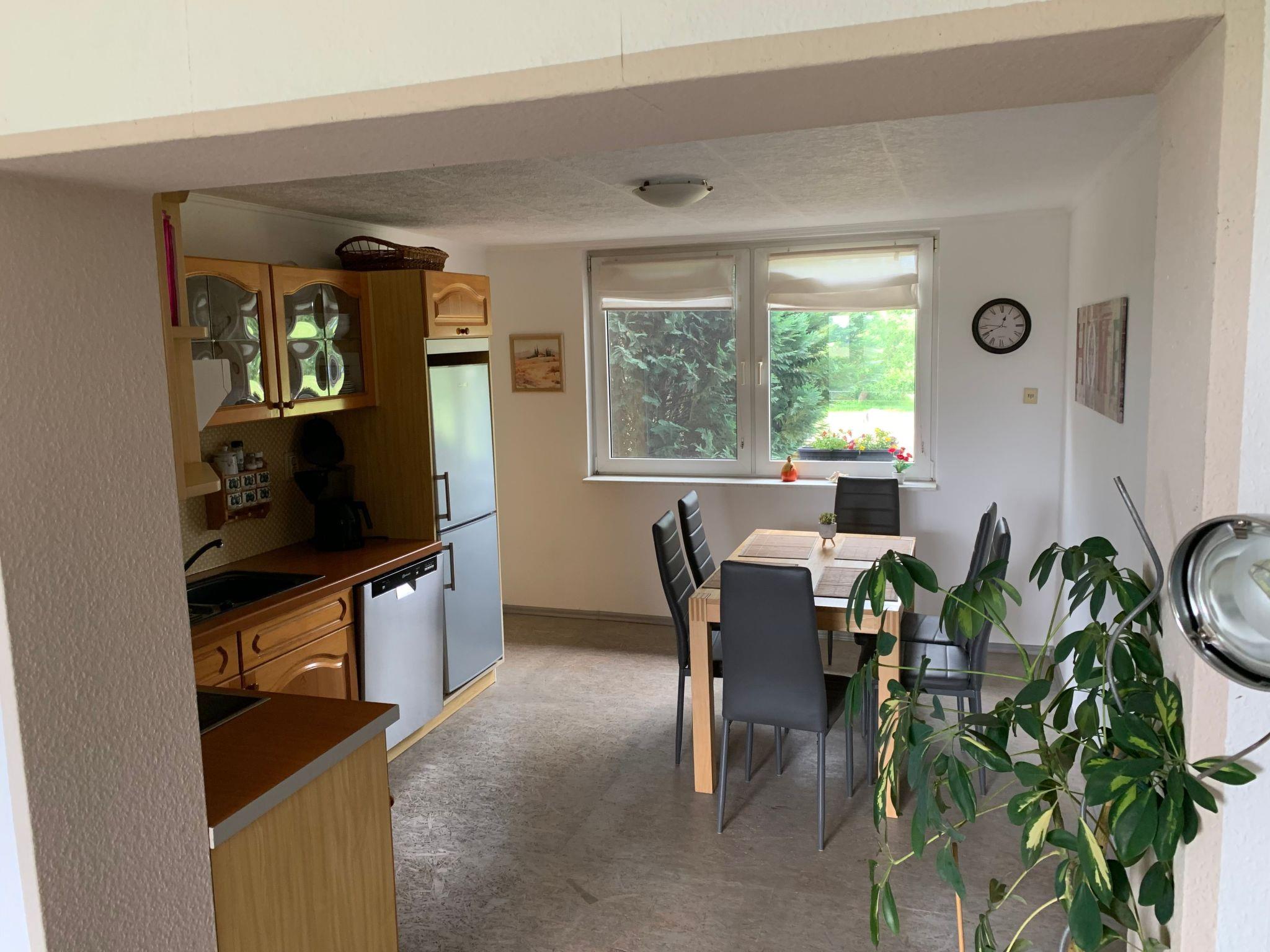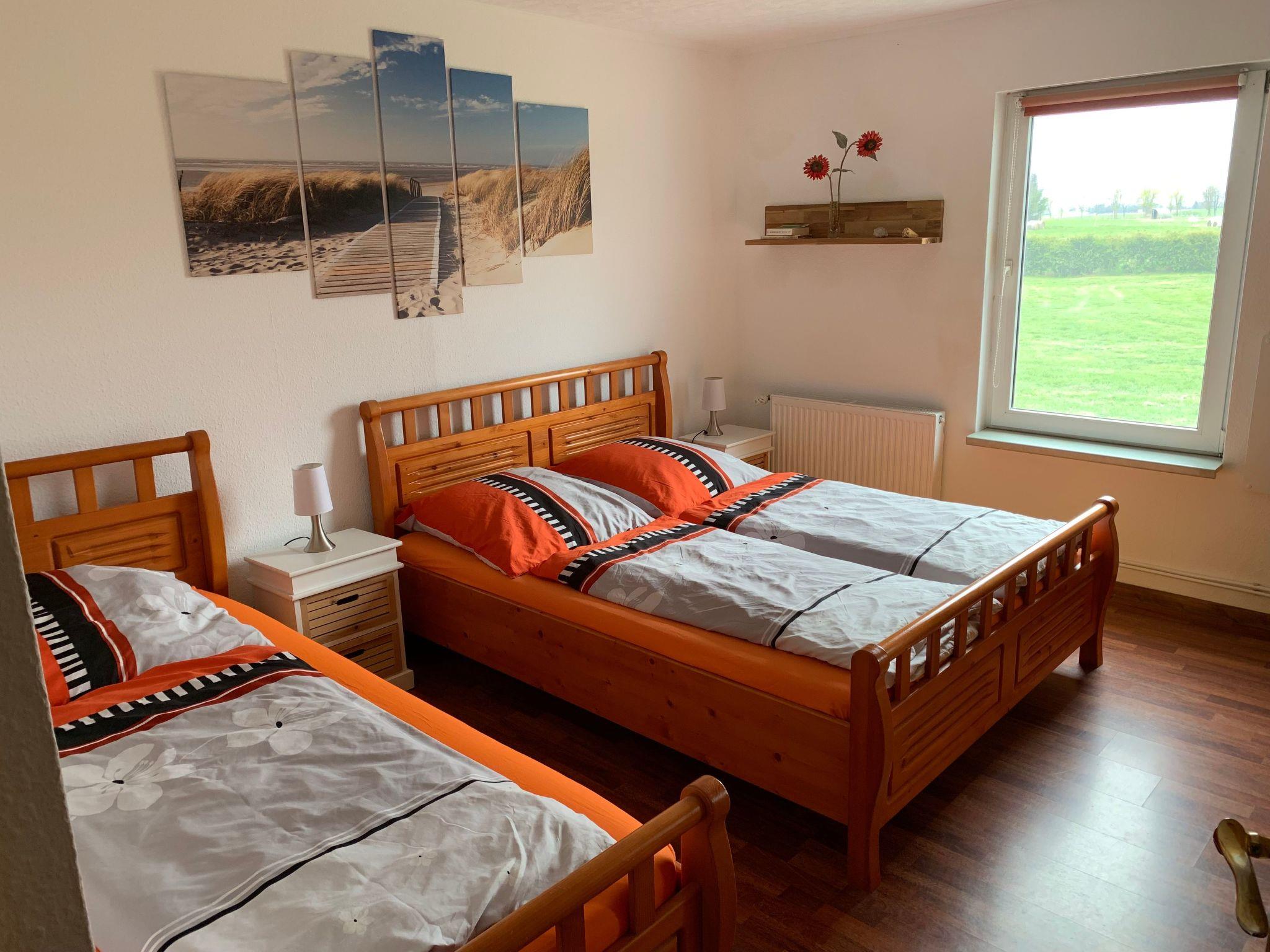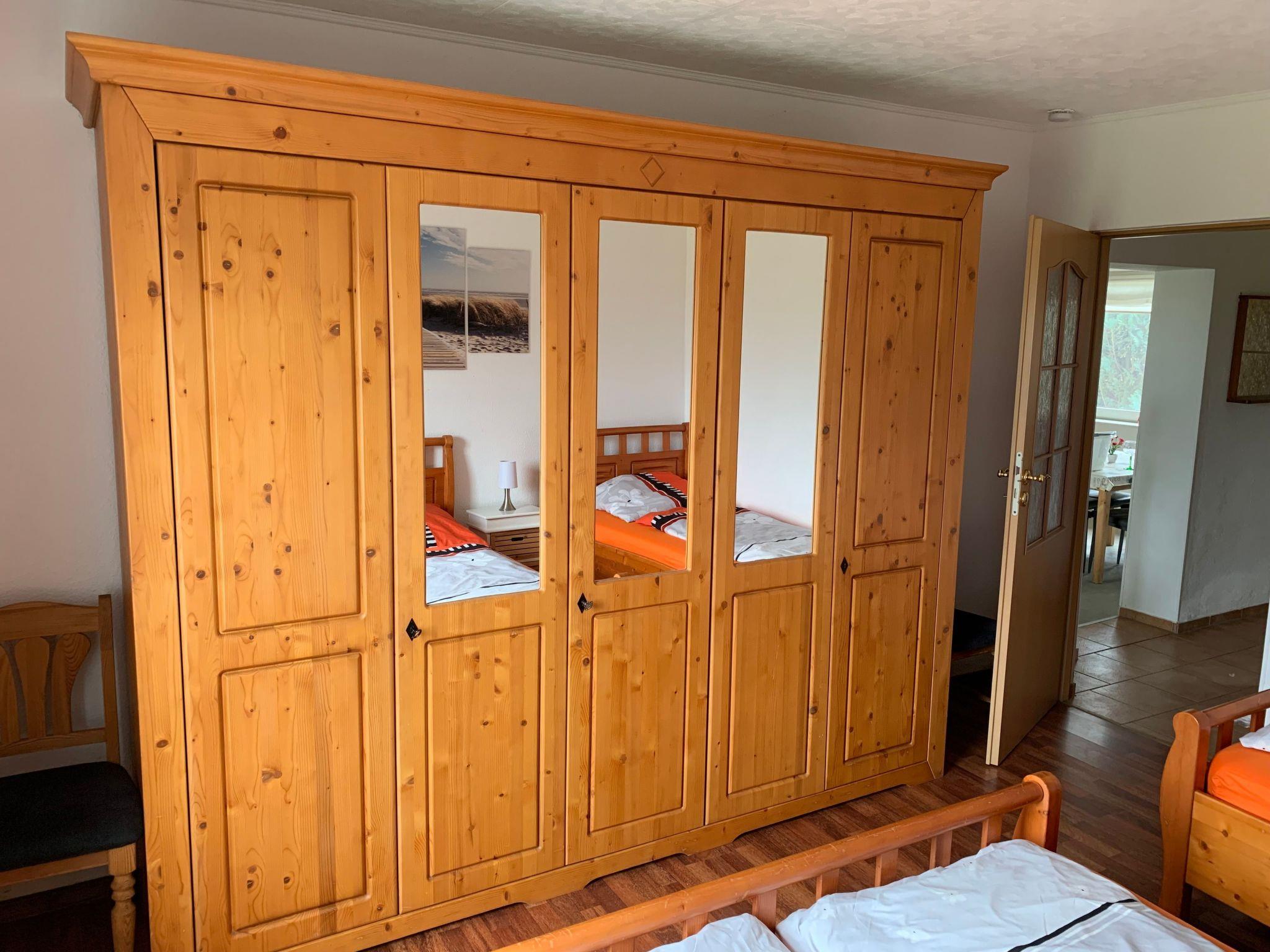 The practical and comfortable apartment of around 85m² is suitable for up to 5 people. The charming interior and cosy warmth will make you feel at home. It comprises two bedrooms, a bathroom with a shower, a fully-equipped kitchen with a fridge-freezer, a dishwasher, microwave, electric stove with a ceramic hob, an extractor fan, toaster, kettle and coffee machine. The living room provides a satellite TV, a radio/CD player and a fireplace stove. The first bedroom is furnished with a double bed, two dressers and a big cupboard. The second bedroom is furnished with a double bed, a single bed and a cupboard, There is space in the hallway for shoes and coats.