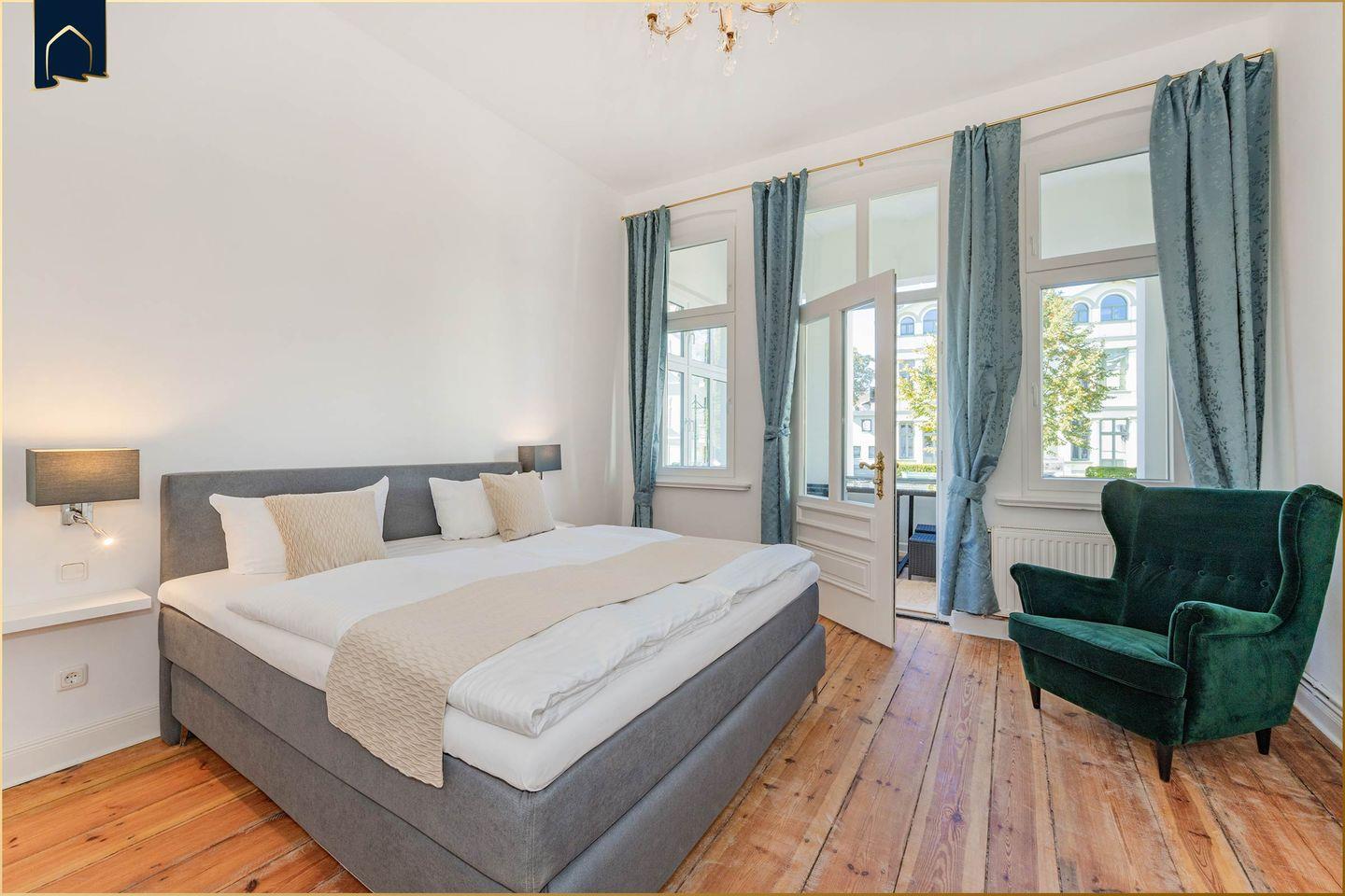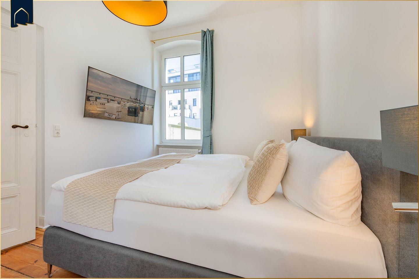 Die Unterkunft punktet mit ihrer zentralen, aber ruhigen Lage: Einkaufsmöglichkeiten und Restaurants sind in nur 500 m zu Fuß erreichbar, ebenso der öffentliche Nahverkehr. Die Historische Seebrücke von Ahlbeck – eines der Wahrzeichen der Insel Usedom – liegt nur wenige Meter entfernt. Direkt vor der Haustür beginnt außerdem die längste Strandpromenade Deutschlands, die von Bansin über Heringsdorf und Ahlbeck bis ins polnische Swinoujscie führt.