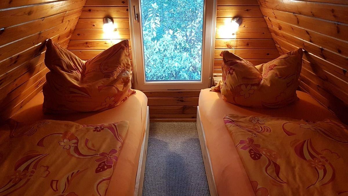 Das Ferienhaus, für maximal 4 Personen, in der Uckermark am Lübbesee ist einfach aber gemütlich eingerichtet. Sie betreten es über die zum Teil überdachte Terrasse im Wohnzimmer. Darin befindet sich eine Schlafcouch, als Aufbettung für 2 Personen, ein kleiner Tisch, zwei Sessel, eine rustikaler Schrank, der Fernseher, ein Esstisch mit Stühlen, ein Radio und ein Kamin. In der Küche finden Sie Schränke, ein Spülbecken, einen Backofen mit Kochplatten, eine Mikrowelle, einen Kühlschrank mit Gefrierfach, eine Kaffeemaschine, einen Toaster und einen Wasserkocher. Das Bad ist ausgestattet mit einer Dusche, dem WC, einem Waschbecken, einem Schrank, einem Hocker und einem Föhn. Vom Wohnzimmer aus gelangen Sie über eine Treppenleiter ins Dachgeschoss in die beiden Schlafzimmern. Im Flur zwischen den Schlafzimmern steht ein Kleiderschrank. Die Schlafzimmer sind jeweils mit 2 Betten und Nachtschränken eingerichtet. Von einem Schlafzimmer aus können Sie einen kleinen Balkon betreten. Im Wohnzimmer finden Sie eine Auswahl an Büchern, Gesellschaftsspielen und Informationsmaterial zur Planung Ihrer Unternehmungen. Auf der Terrasse befinden sich ein Tisch mit Gartenstühlen und ein Grill. Im Garten sind Sonnenliegen und ein Sonnenschirm vorhanden. Ihren PKW können Sie auf dem Grundstück parken.