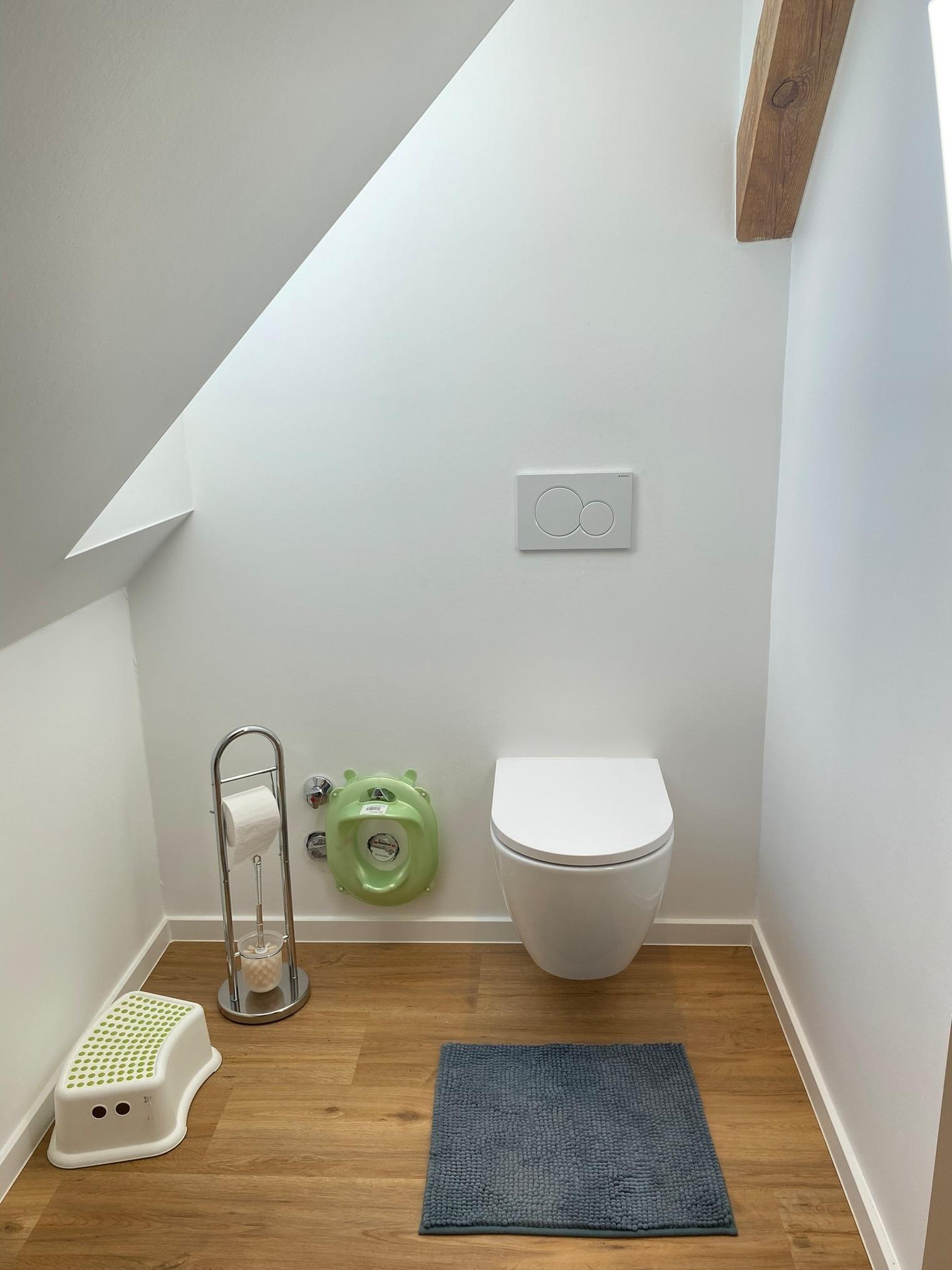 Die Wohnung erreicht man über eine separate Außentreppe auf der Rückseite des Hauses. Dort befindet sich außerdem eine Terrasse mit Gartenmöbeln und einer Grillmöglichkeit.