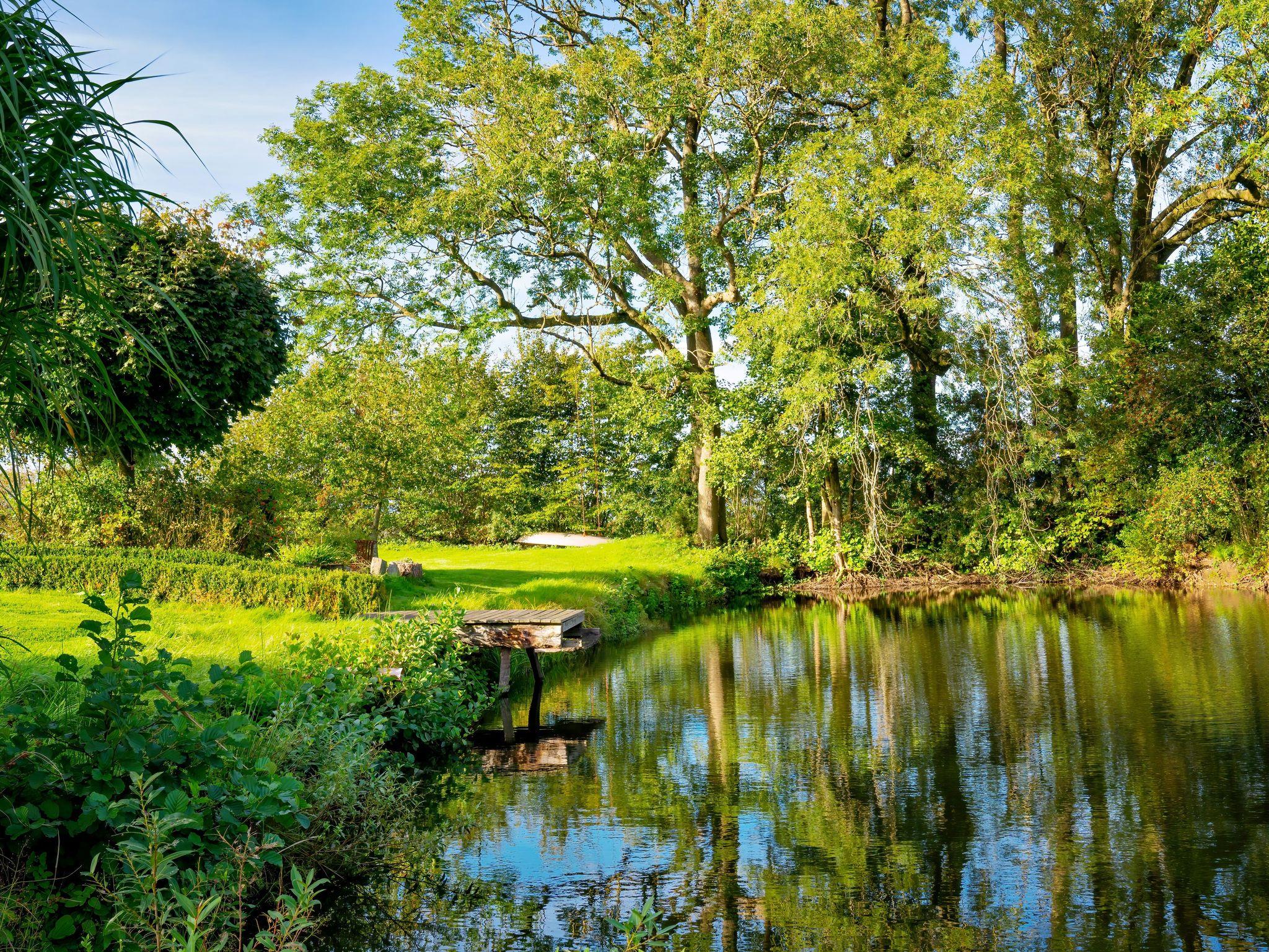 Ein schmaler Privatweg, der von den typischen norddeutschen Knicks (Naturhecken) umgeben ist, führt Sie zu unserem Haus. Der naturnahe Garten, der ca. 2 ha groß ist, wurde über viele Jahre mit Leidenschaft gestaltet und gepflegt. Unser Naturteich und unsere Streuobstwiese sind Teil einer traumhaften Oase für Ihre wohlverdiente Erholung.