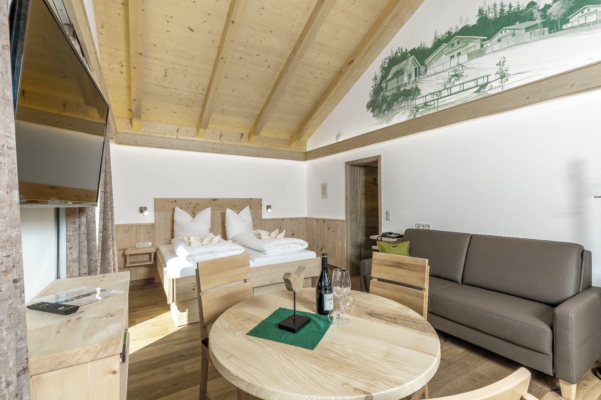 Das Appartement hat eine Wohnfläche von ca. 30-38m² auf einer Etage (im Erdgeschoss), Wohn-/Schlafraum mit Zirbenholz-Doppelbett, Naturleder-Ausziehsofa, voll ausgestatteter Küche, Badezimmer mit DU/WC, Esstisch, Flat-TV, Telefon und WLAN. Jedes Appartement verfügt über eine eigene Terrasse und einen Gartenanteil direkt vor dem Appartement.