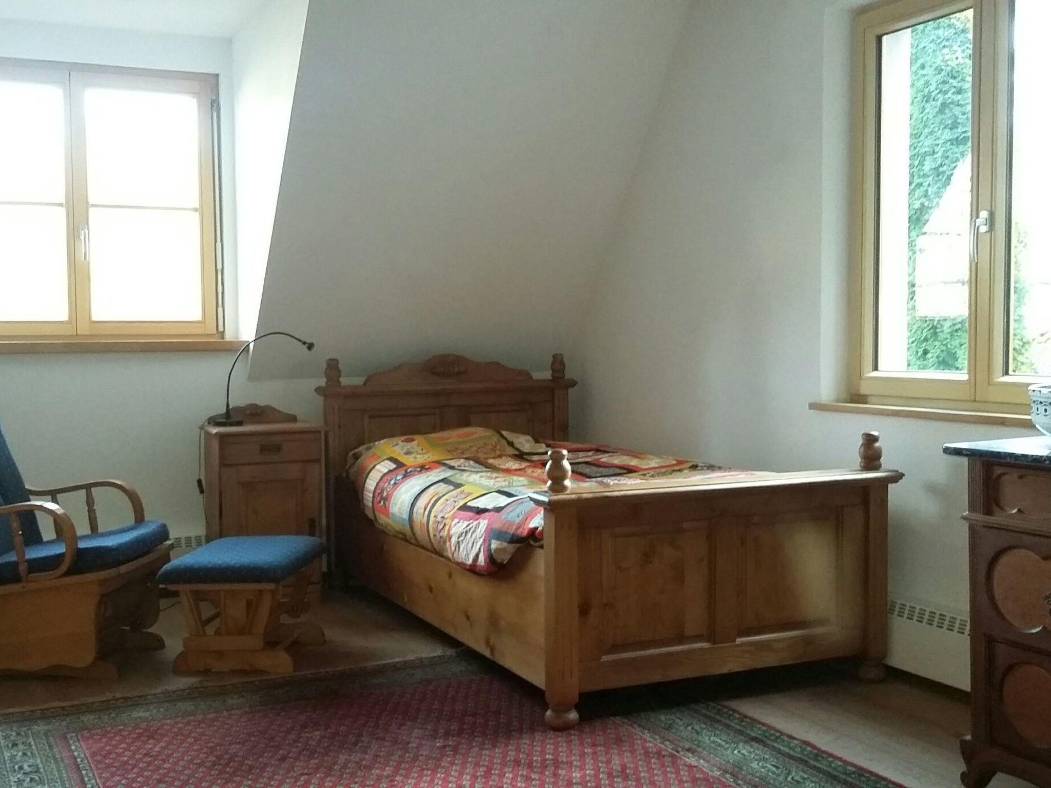 The big, mature trees such as birch, linden, red beech and spruce provide shady spots in summer, with a hammock and canopy swing, as well as a wintery atmosphere. The adjacent pond invites you to go on a little boat trip, or skating in winter. The view of the river Iller flowing in front of the reservoir dam is very calming. Leisure activities in the area include fishing (with fishing permit only and in certain sections of the Iller), walks and hikes on the Aitracher Höhenweg, the Wurzacher Ried, the Danube Valley or simply the adjoining forest to the animal park. The slightly hilly surroundings also invite you to go biking. Bicycles are available on request. You can go for a stroll in the towns of Memmingen, Ulm, Kempten, Wangen or visit the Ulm minster, the Buxheim charterhouse or the farm museum in Illerbeuren. You can swim in the surrounding lakes, as well as in indoor, outdoor and thermal pools. In winter you can go skating on the nearby lake or at the rink in Memmingen. There are cross-country skiing trails about 20km away, ski pistes 50km away. Hot air balloon rides, the Skyline Park, scenic flights, golf, BMX riding or carting are all available. You can do shopping in Aitrach about 3km away, either by bike through the forest or by car, with a bakery, beer garden with a small animal zoo, a butcher, an Edeka market, a pharmacy, a doctor, a bank with an ATM (Raiffeisenbank), a petrol station in Tannheim about 5km away, a restaurant a ten-minute walk away. There is further entertainment in Memmingen about 15km away.