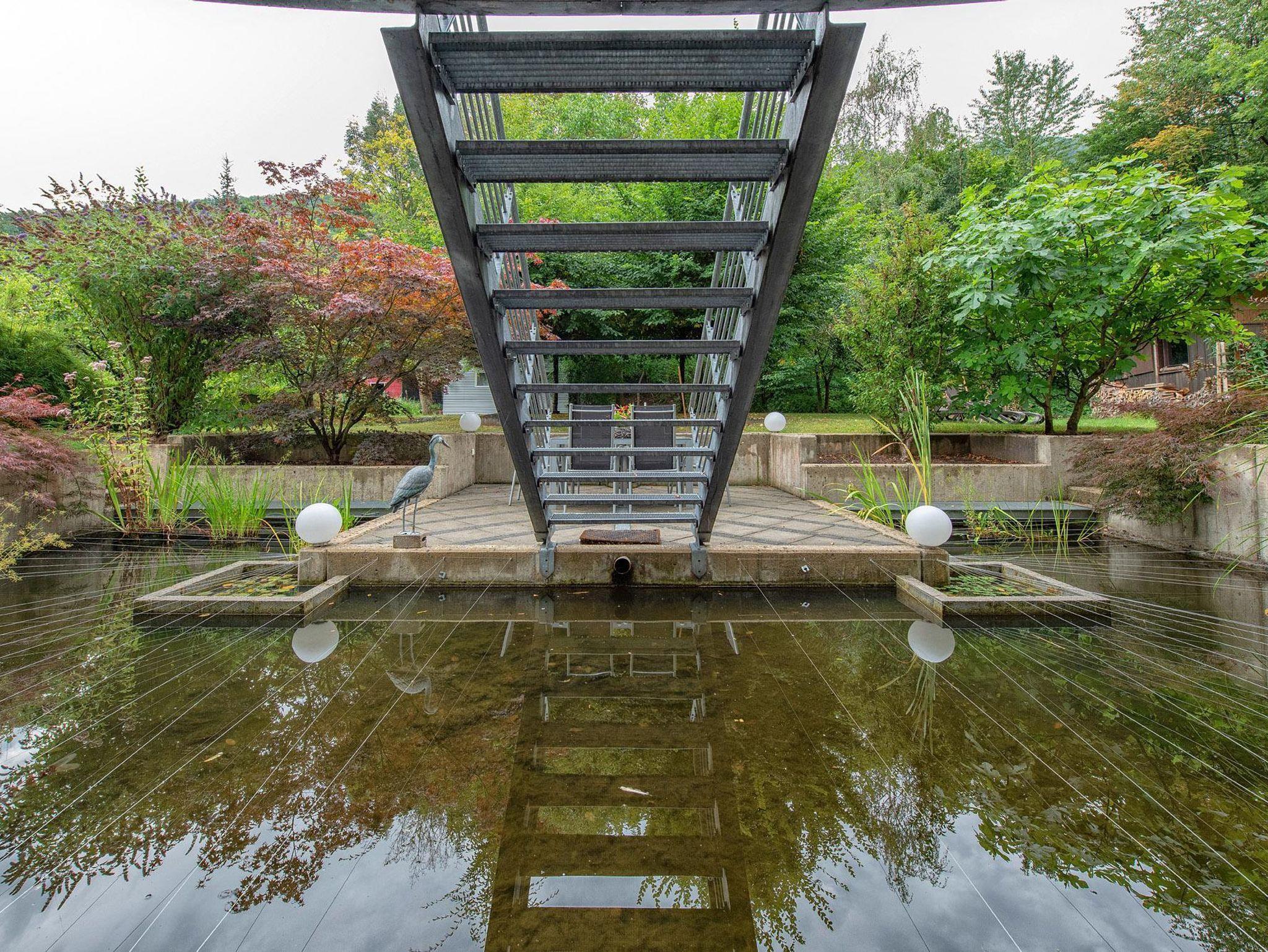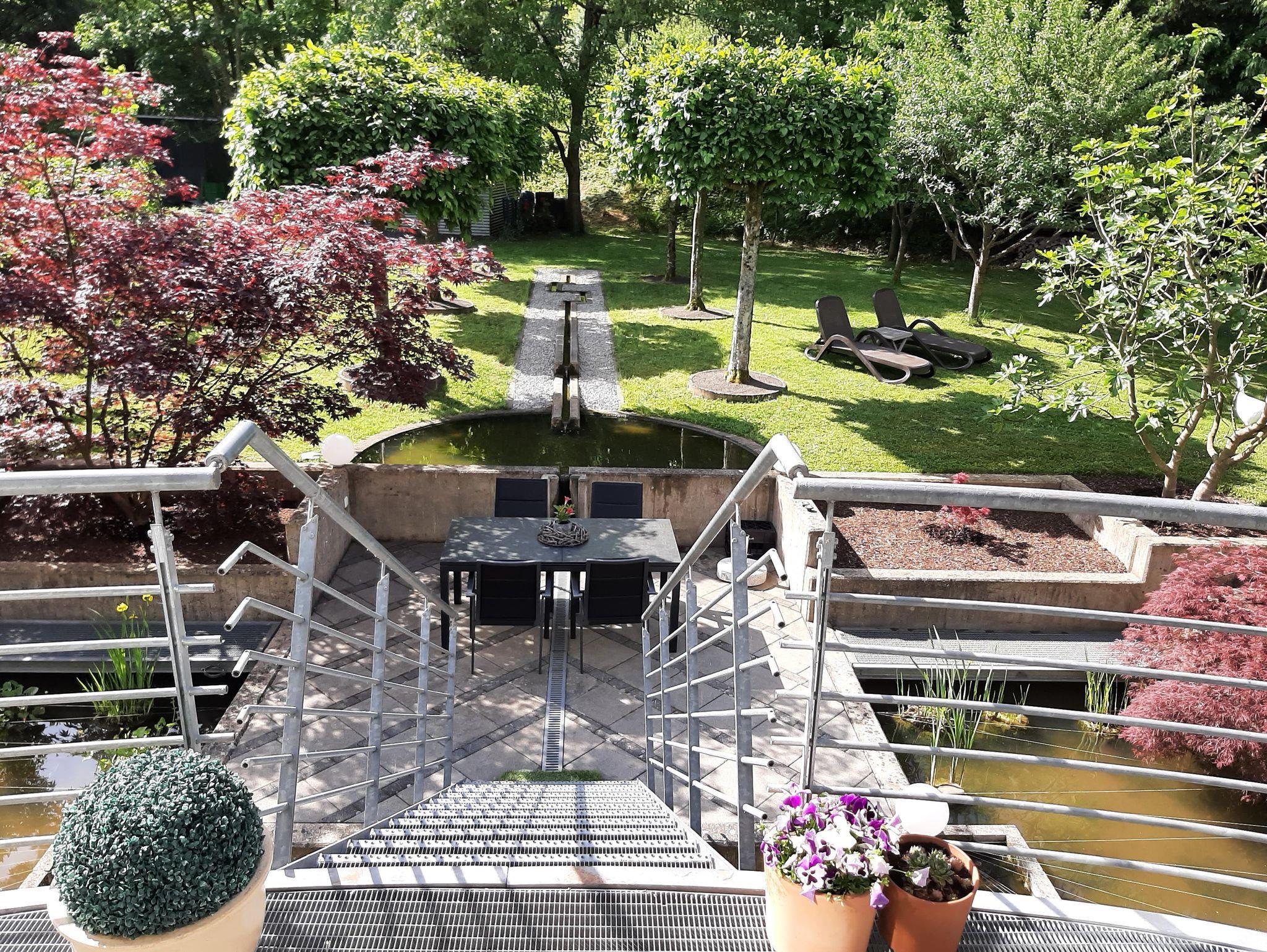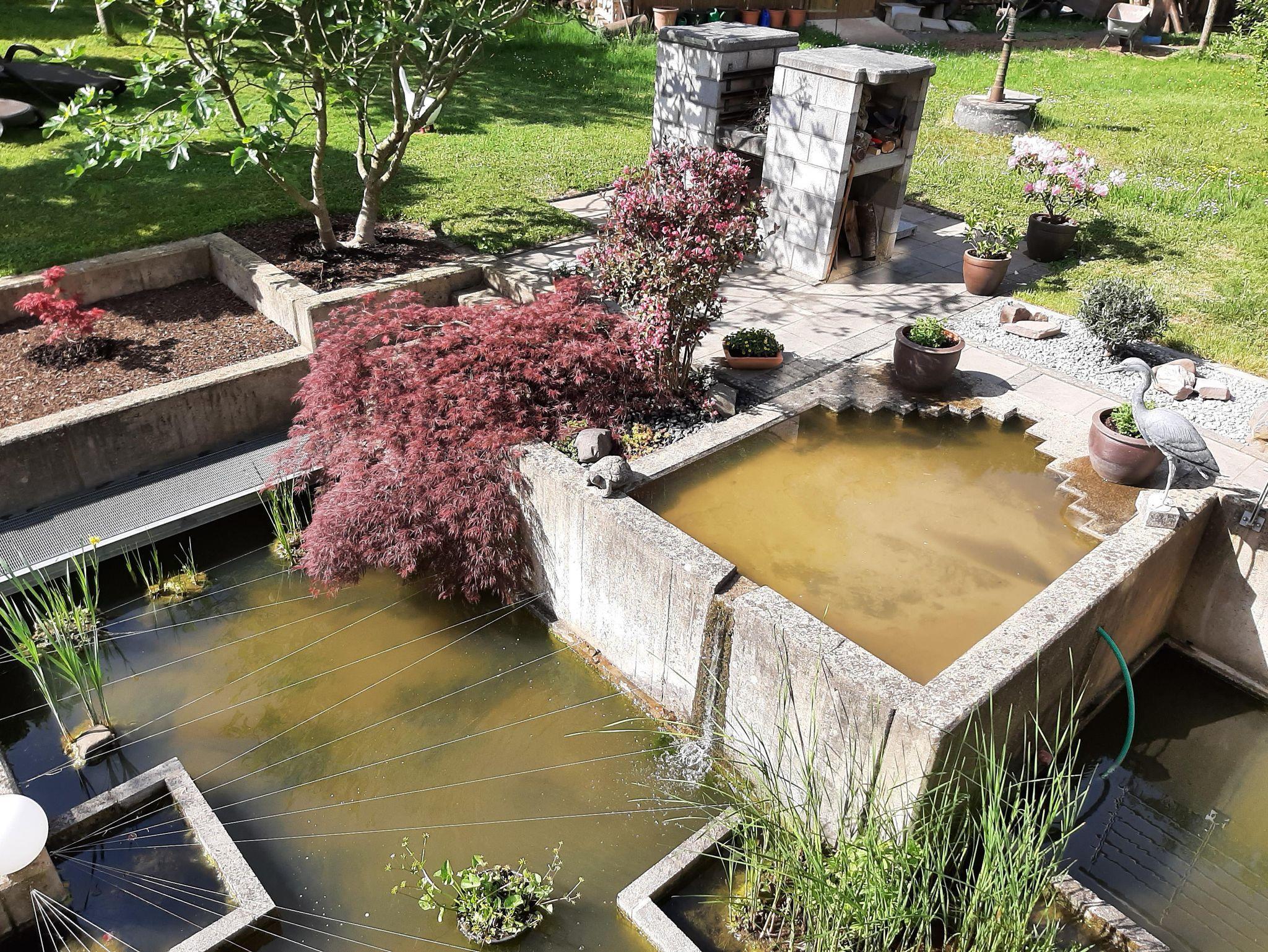 Von Ihrer Ferienwohnung gelangen Sie in unseren großzügigen Garten mit Liegewiese (2 Sonnenliegen) und Teichanlage, in der sich zahlreiche Koi's befinden. Auch eine Grillstelle ist vorhanden, die Ihnen zur Verfügung steht.