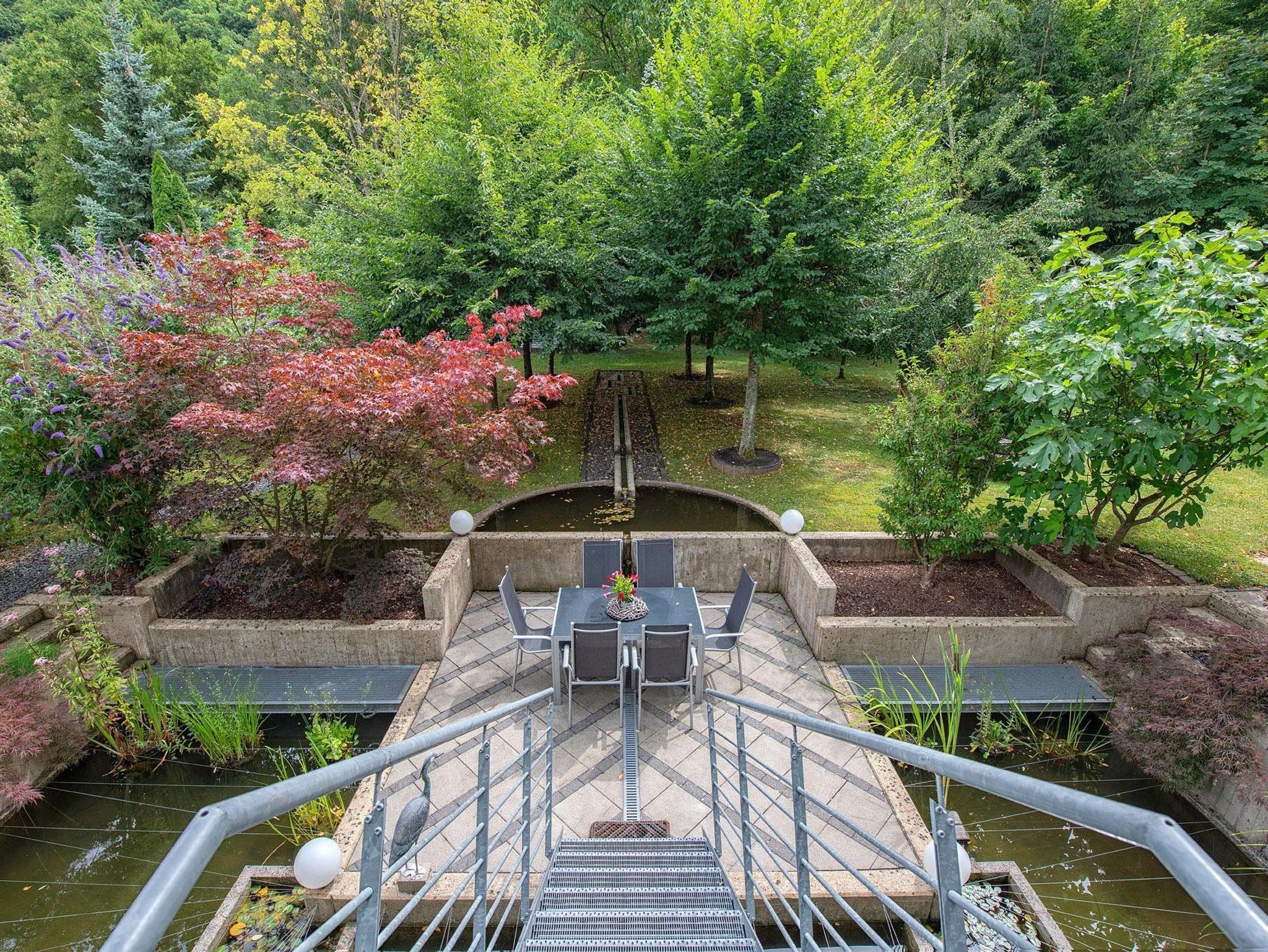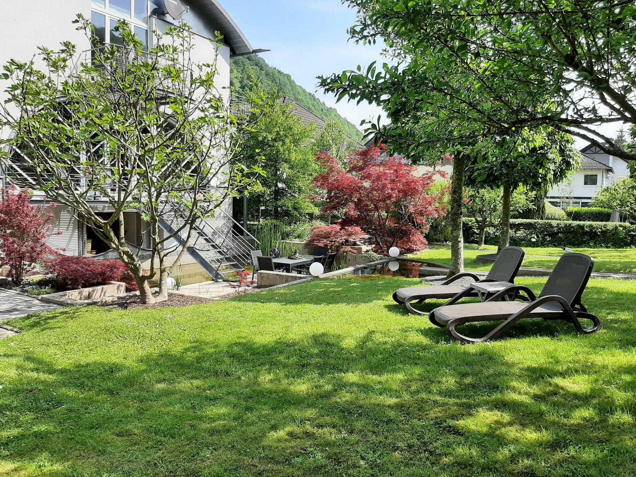 Von Ihrer Ferienwohnung gelangen Sie in unseren großzügigen Garten mit Liegewiese (Sonnenliegen) und Teichanlage, in der sich zahlreiche Koi's befinden. Auch eine Grillstelle ist vorhanden, die Ihnen zur Verfügung steht.