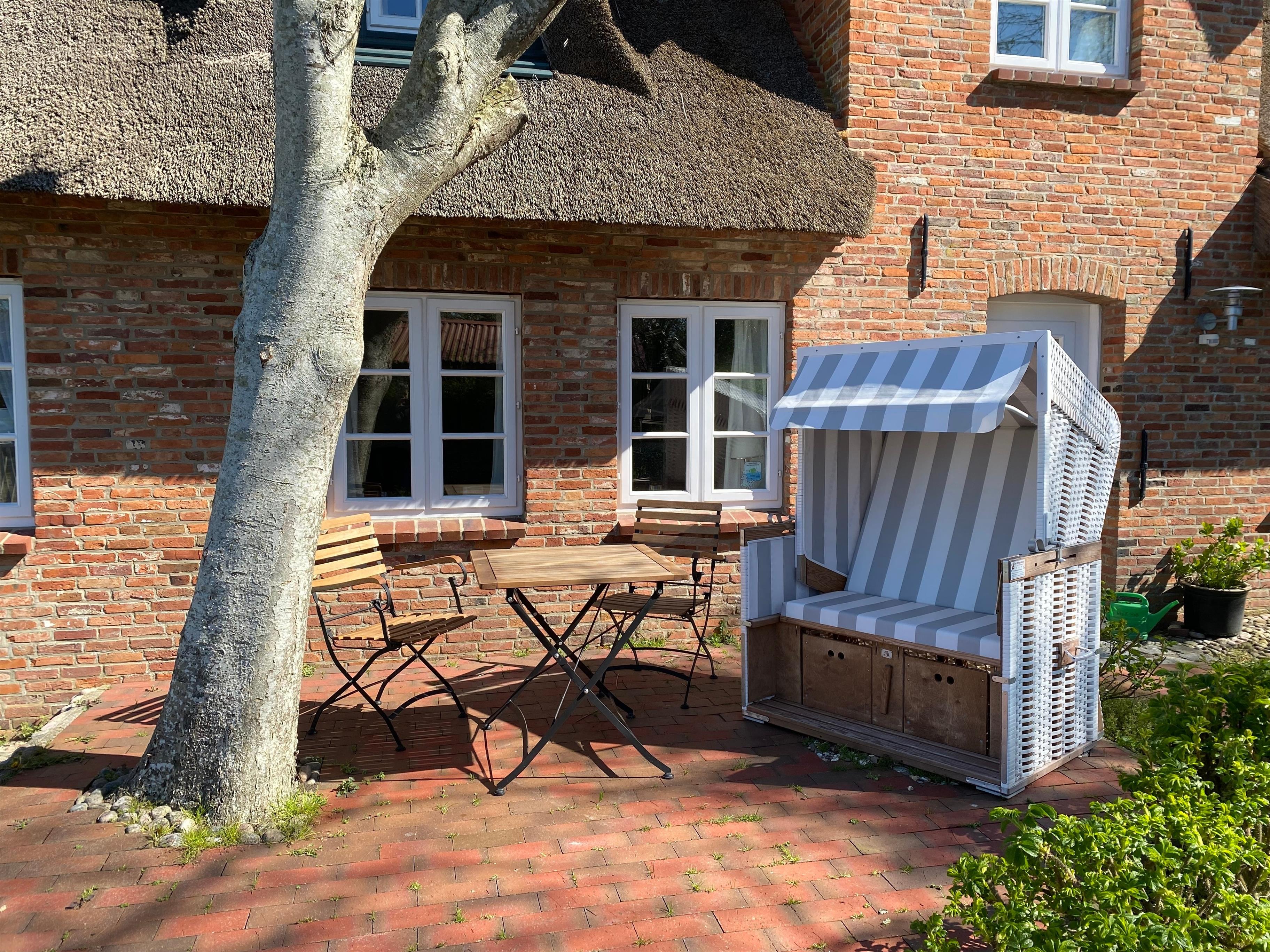Durch ihre Lage im zentralen Inseldorf Alkersum bietet die Wohnung kurze Wege zu allen Sehenswürdigkeiten der Insel. Zahlreiche reetgedeckte Häuser im Ortskern, Pferdeweiden und Stallungen sowie das überregional bekannte Museum Kunst der Westküste prägen den Charakter des historischen Dorfes. Auch ein Bäcker und ein Hofladen im Ort sind nur wenige Gehminuten entfernt.