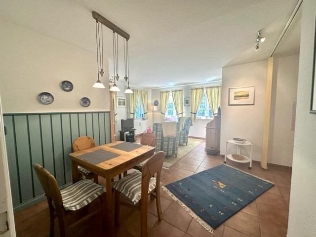 Die Wohnung befindet sich im EG eines 1999 erbauten Reetdachhauses in Alkersum und ist gemütlich und komfortabel ausgestattet. Am Haus befindet sich ein Stellplatz für Ihr Fahrzeug sowie hinter dem Haus Fahrradständer. Im Keller befinden sich Waschmaschine und Trockner (gegen Gebühr, ein Startvorrat an Münzen im Sekretär). Die ca. 42 qm große Wohnung besteht aus 1 Bad, 1 Schlafzimmer, Wohnraum mit Essecke und einer Einbauküche. Hier finden Sie alles für einen angenehmen Urlaub. Das Schlafzimmer ist mit einem Doppelbett ausgestattet. Sie können gelassen und entspannt Ihren Urlaub verbringen, weit weg vom Trubel der Großstadt. Trotzdem bietet Ihnen das kleine Örtchen Alkersum Einkaufsmöglichkeiten (Bäckerei/ Hofladen) und Gastronomie gleich auf der gegenüberliegenden Straßenseite. Wem das nicht reicht, der kommt im nahegelegenen Friesenort Nieblum (ca. 2 km entfernt) sicher auf seine Kosten.