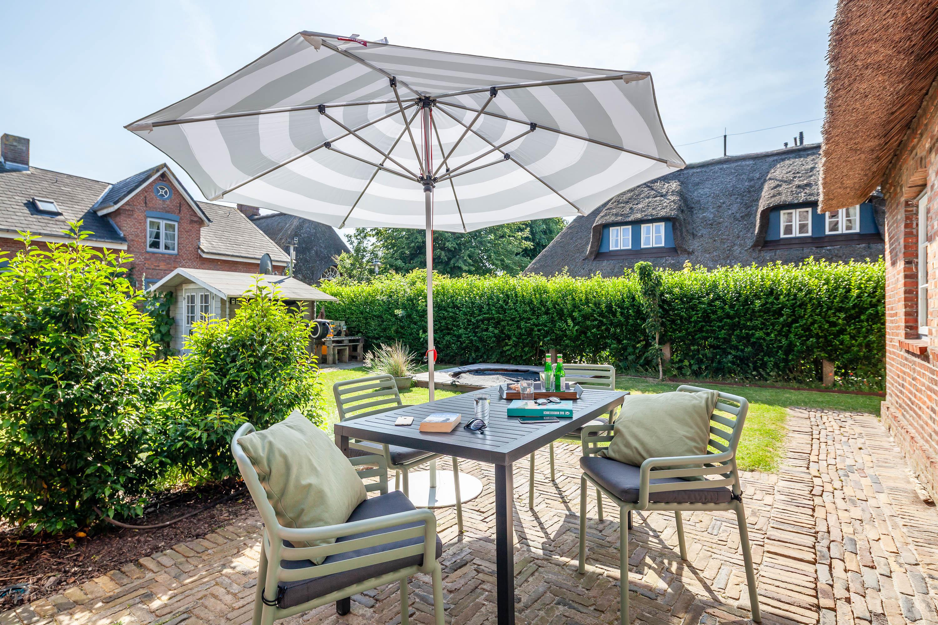 Urlaub unter Reet – genießen Sie ihre Auszeit in unserem Hus Strungud in idyllischer Lage im Dorfkern von Alkersum. Das historische Friesenhaus wurde bereits Anfang des 18. Jahrhunderts errichtet und zählt damit inselweit zu den ältesten Zeitzeugen.