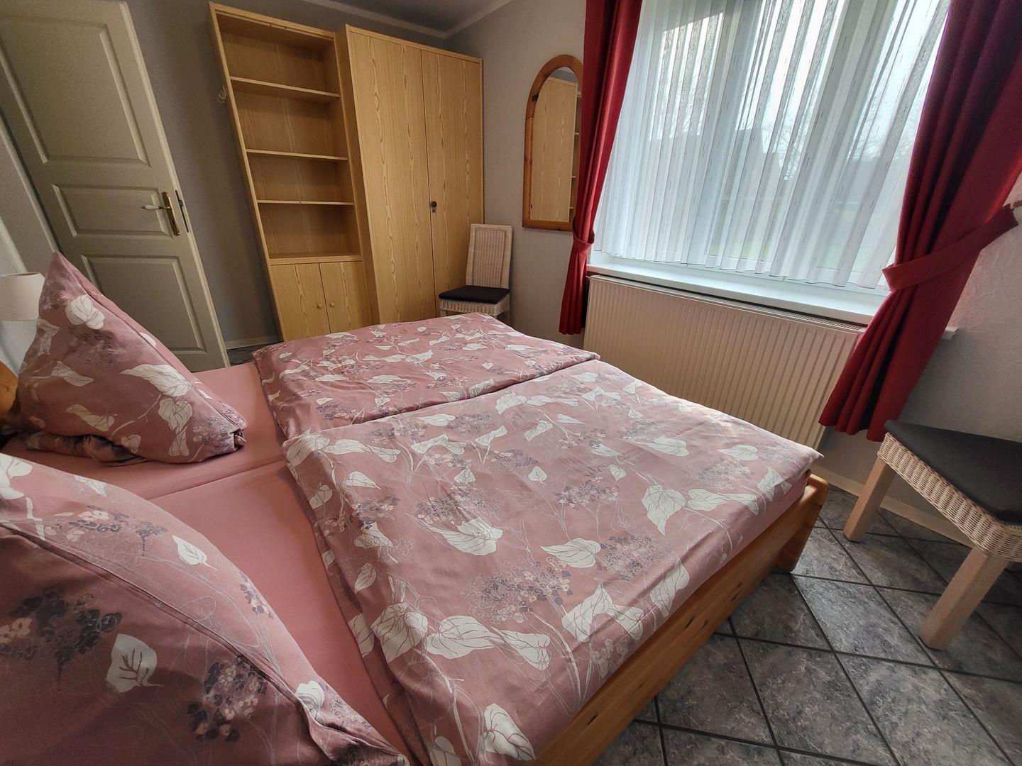 Die Wohnung ist wie folgt aufgeteilt: WOHNBEREICH (ein Sofa, 1 Sessel, ein Couchtisch, Sat-TV, Radio, kostenloses Internet), Süd-West-Terrasse, vollausgestattete KÜCHE MIT ESSBEREICH (u.a. Esstisch mit 2 Stühlen und einer Eckbank, Geschirrspüler, Mikrowelle, Backofen, Ceranfeld, Kühlschrank mit Gefrierfach, Kaffeemaschine, Toaster, Eierkocher, Besteck und Töpfe), SCHLAFZIMMER 1 mit einem Doppelbett (180 x 200 cm) und einem Kleiderschrank, SCHLAFZIMMER 2 mit zwei Einzelbetten (je 90x200 cm) und einem Kleiderschrank, BADEZIMMER mit Dusche, Fenster, WC, Handtuchwärmer, Waschbecken, Spiegelschrank und Föhn, sowie FLUR mit einer kleinen Garderobe. Zur Wohnung gehört ein Parkplatz am Haus. Ihre Fahrräder können Sie direkt am Haus abstellen. Eine Waschmaschine und ein Wäschetrockner können gegen Gebühr genutzt werden (der private Waschraum ist ca. 500 m von der Wohnung entfernt).