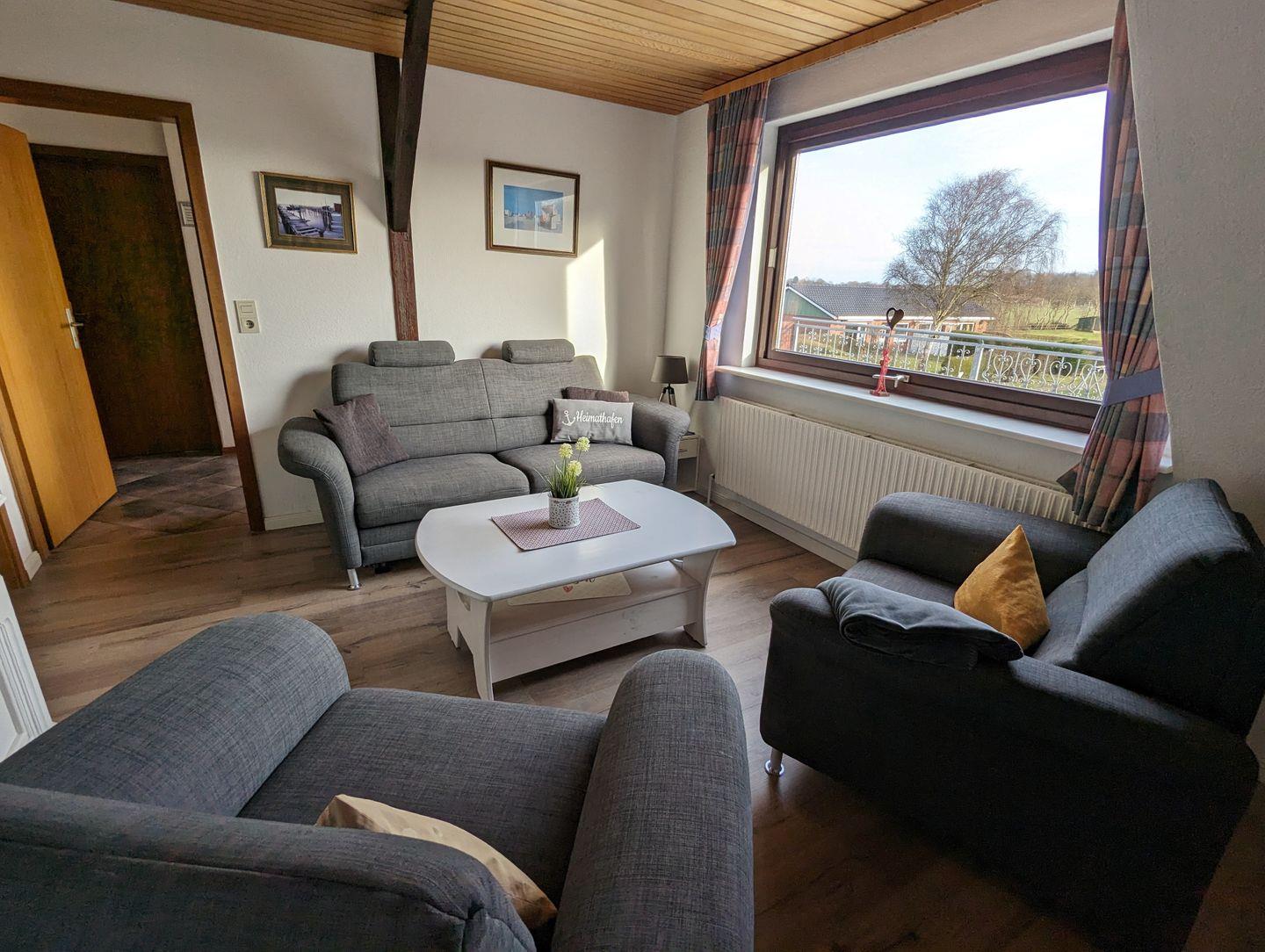 Die Wohnung Ankerplatz liegt im 1.OG, ist allergikerfreundlich und verfügt über zwei Schlafzimmer mit vier Schlafplätzen. Auf dem großen möblierten Südost-Balkon mit Sonnenschirm und einem Weitblick über den Feldern können Sie die frische Luft, Ihr Frühstück oder Abends ein Glas Wein genießen. WLAN steht kostenlos zur Verfügung. Ein PKW-Stellplatz gehört zur Wohnung. Ihre Fahrräder können direkt am Haus abgestellt werden. Waschmaschine und Wäschetrockner im Nachbarhaus (gegen Gebühr).