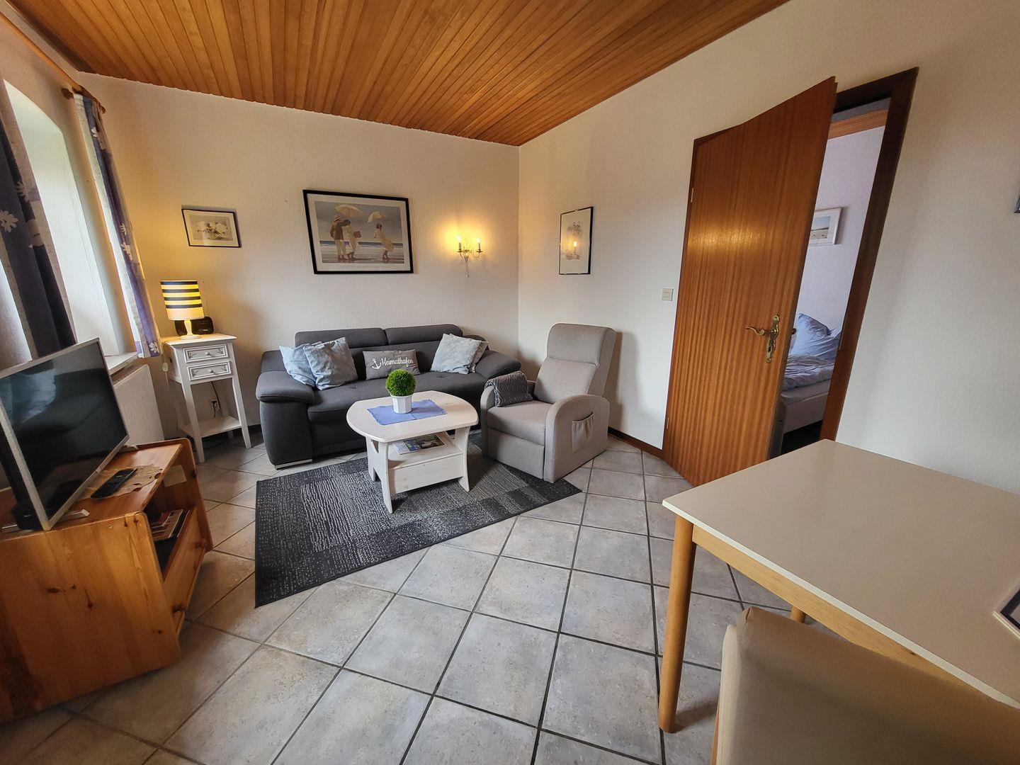 Die Wohnung Seehund liegt im Erdgeschoss, ist allergikerfreundlich und bietet zwei Personen Schlafplatz. Auf der möblierten Süd-West-Terrasse mit Strandkorb und Sonnenschirm oder auf der kleinen Liegewiese können Sie sich sonnen, entspannen und die frische Luft genießen.