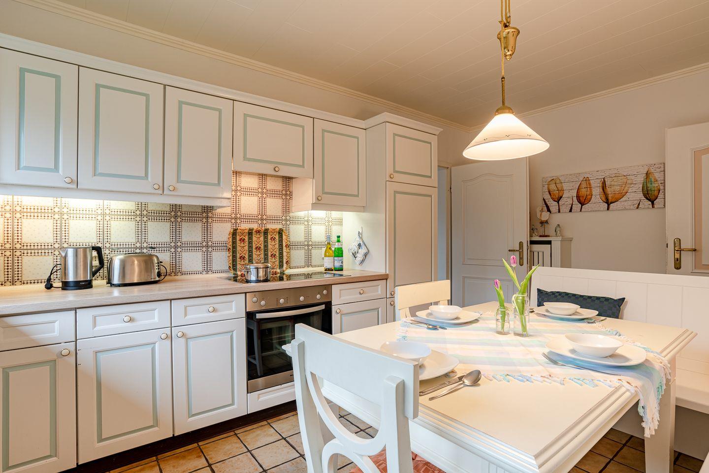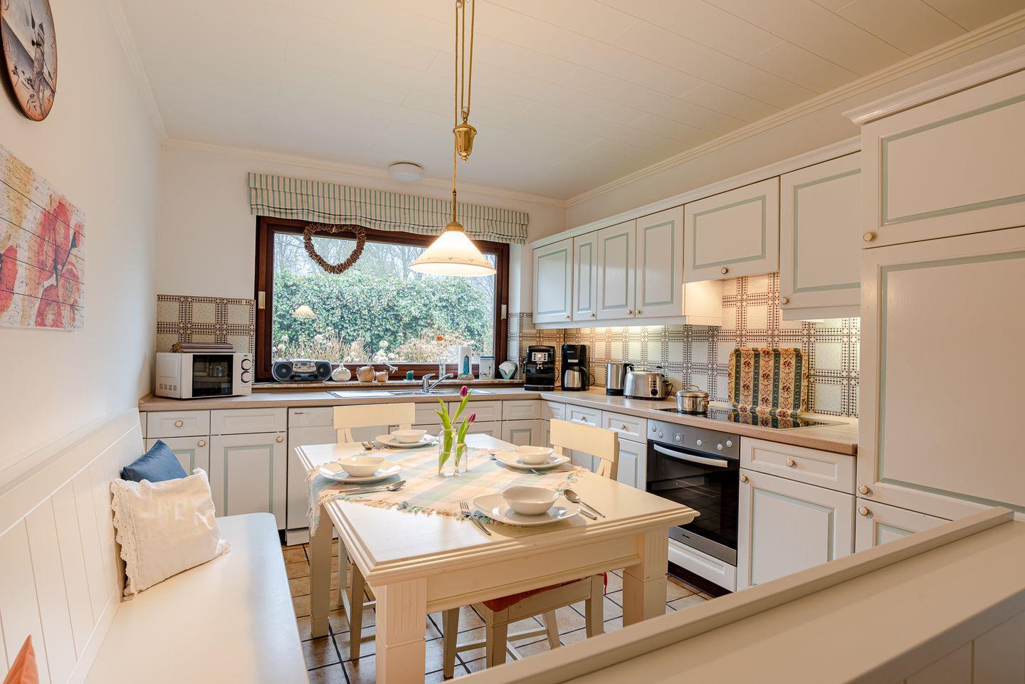 Die Ferienwohnung ist im Erdgeschoss gelegen und verfügt über einen großzügigen Wohn- und Essbereich mit separater Küche, zwei Schlafzimmer, einen Wintergarten, ein Duschbad und ein Gäste-WC, sowie einen gemeinschaftlich genutzter Hauswirtschaftsraum mit Wachmaschine und Trockner. Die Schlafzimmer sind mit einem Doppelbett bzw. zwei Einzelbetten ausgestattet. Über das Doppelbettzimmer und den Wohnbereich gelangen Sie in den Wintergarten und von dort aus direkt auf die eigene Terrasse und in den Garten.