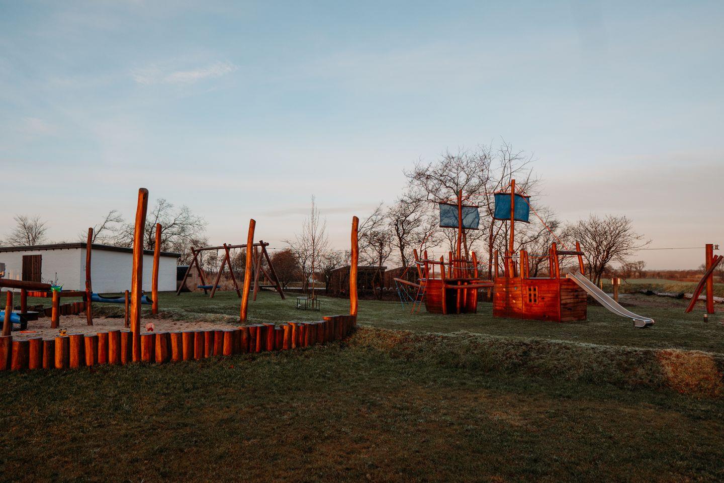 Der groß angelegte Spielplatz auf dem Grundstück ist eine Wohlfühloase für Ihre Kinder - von Seilbahn und Schaukel über ein Basketballfeld bis Trampolin gibt es viele Möglichkeiten zum Austoben. Der Spielplatz steht ausschließlich den Gästen der Ferienanlage Landliebe zur Verfügung. Bei schlechtem Wetter erheitern Tischtennis und Kicker sowie eine "Ecke" zum Spielen und Toben in der Spielscheune die Gemüter. In einem vom restlichen Garten abgetrennten Bereich lädt die Fass-Sauna mit Ruheraum und Außendusche zum Relaxen in Strand-Ambiente ein - Erholung pur! Der große Parkplatz mit E-Auto-Ladestation auf dem Grundstück oder der kostenfreie Shuttle vom Hafen zum Hotel (mit Voranmeldung) runden das Angebot ab.