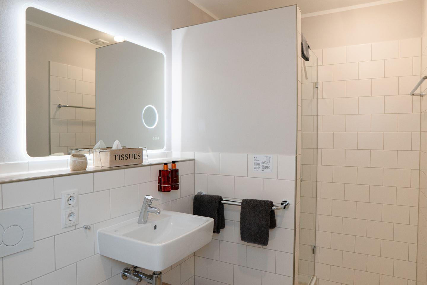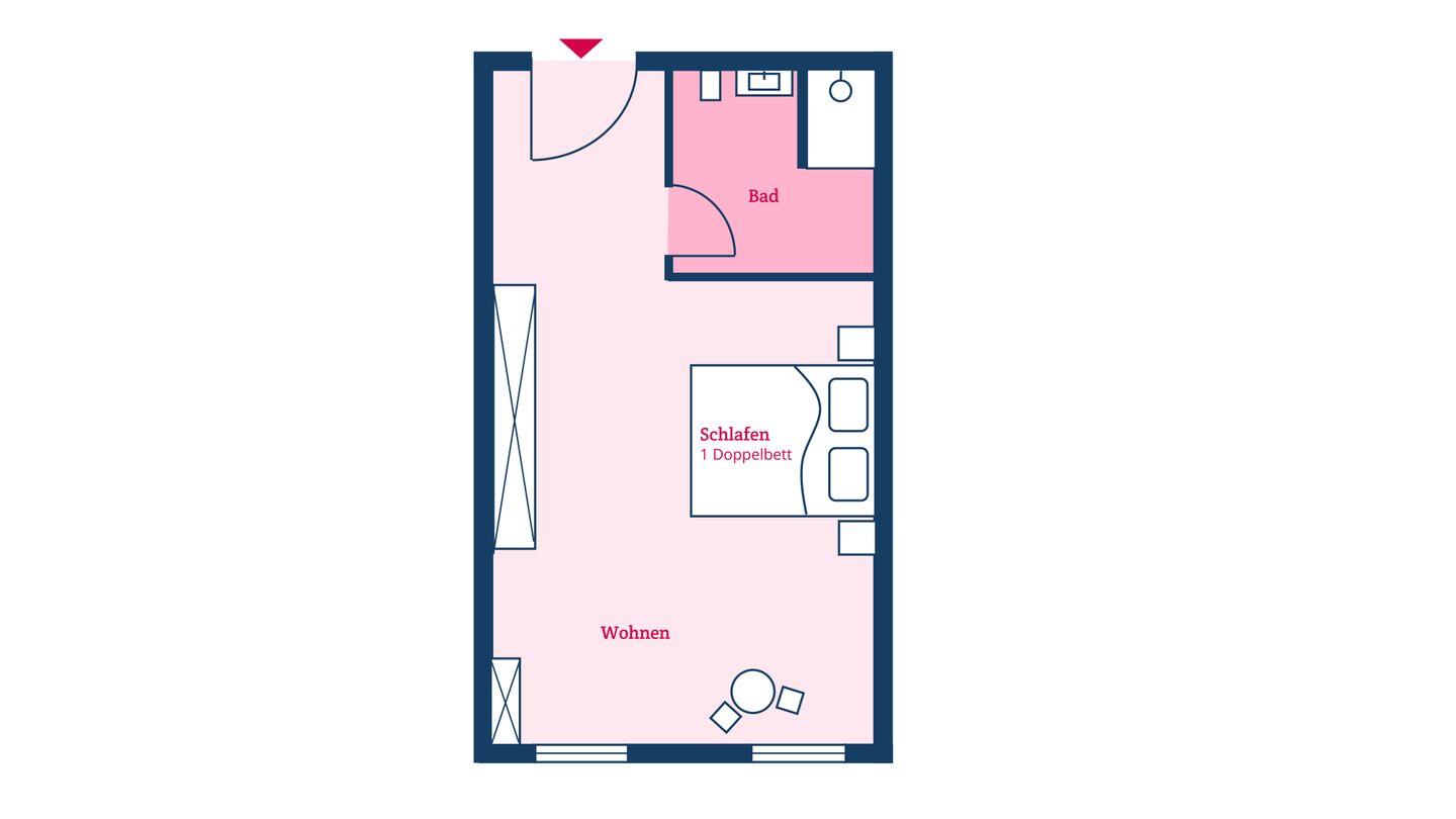 Das Doppelzimmer 5 ist in ein Wohn-Schlafzimmer und ein Duschbad unterteilt und bietet somit komfortabel Platz für bis zu 2 Personen zuzüglich einer Kleinkinderaufbettung.