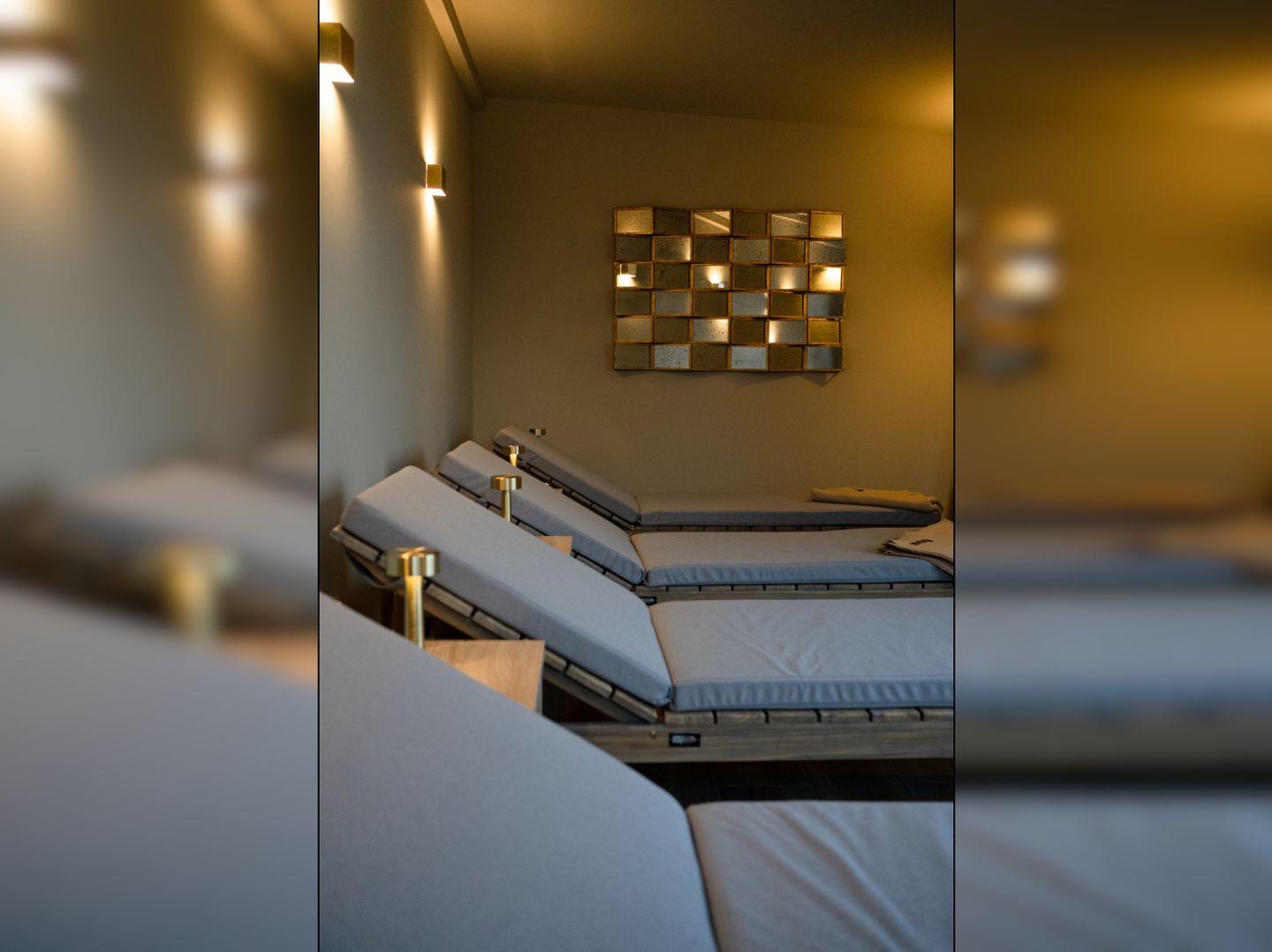 Zu den gemeinschaftlich genutzten Räumen der Ferienanlage zählen der Lounge-Bereich mit eigenem Kamin und die großzügige, hochwertig ausgestattete Küche mit 4 Kochstationen, 2 Backöfen, einem Thermomix sowie einem Geschirrspüler.