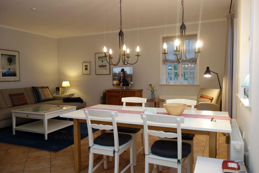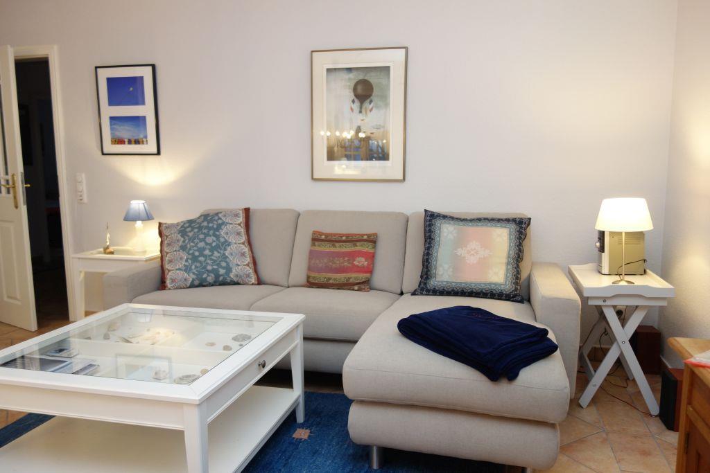 Die Wohnung 3 liegt im Erdgeschoss und verfügt über 2 Schlafzimmer (1 Schlafzimmer mit Doppelbett 2*90*200 und 1 Schlafzimmer mit 2 getrennten Betten jeweils 90*200) und einen großzügigen Wohn-Essbereich mit gut ausgestatteter Küche. Am großen Esstisch finden alle Platz, entweder für die Mahlzeiten oder das gemeinsame Spielen, oder oder oder. Im Badezimmer mit Tageslicht und Fenster zum Öffnen erwartet Sie eine bequeme Badewanne, die aufgrund der Glaswand auch als Dusche genutzt werden kann. Ein Hund ist auf Anfrage gestattet. Ihre Terrasse ist mit Möbeln und einem Strandkorb ausgestattet.