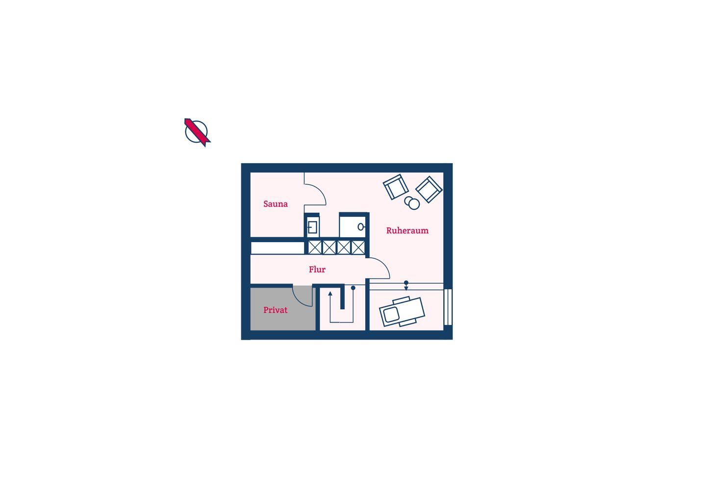 Im Souterrain stehen Ihnen die hauseigene Sauna samt Wellnessraum mit separater Dusche und Waschbecken, sowie ein Hauswirtschaftsraum mit Waschmaschine und Trockner zur Verfügung.