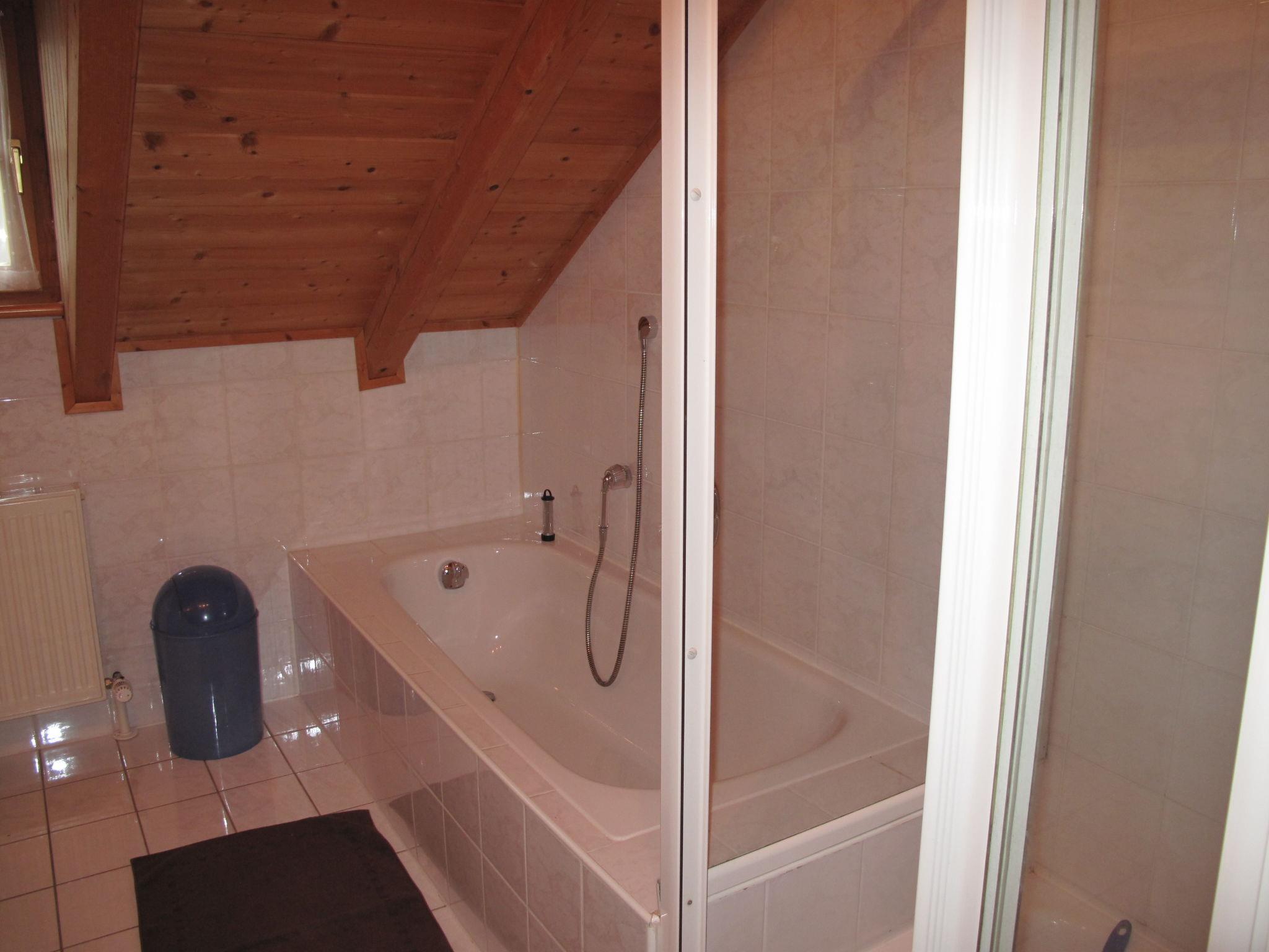4-room house 140 m2 on 2 levels. Rustic and cosy furnishings: living room with Scandinavian wood stove, satellite TV, CD-player and hi-fi system. Exit to the garden. Open kitchen (oven, dishwasher, toaster, kettle, electric coffee machine) with dining nook. Shower/WC. Underfloor heating. Upper floor: 2 double bedrooms with sloping ceilings. Exit to the balcony. 1 room with sloping ceilings with 2 beds. Bath/shower/WC. Oil heating. Wooden floors. Balcony, terrace. Terrace furniture, deck chairs, box-room. Facilities: washing machine, children's high chair, baby cot. Internet (WiFi, free). Please note: non-smoking house. Smoke alarm.