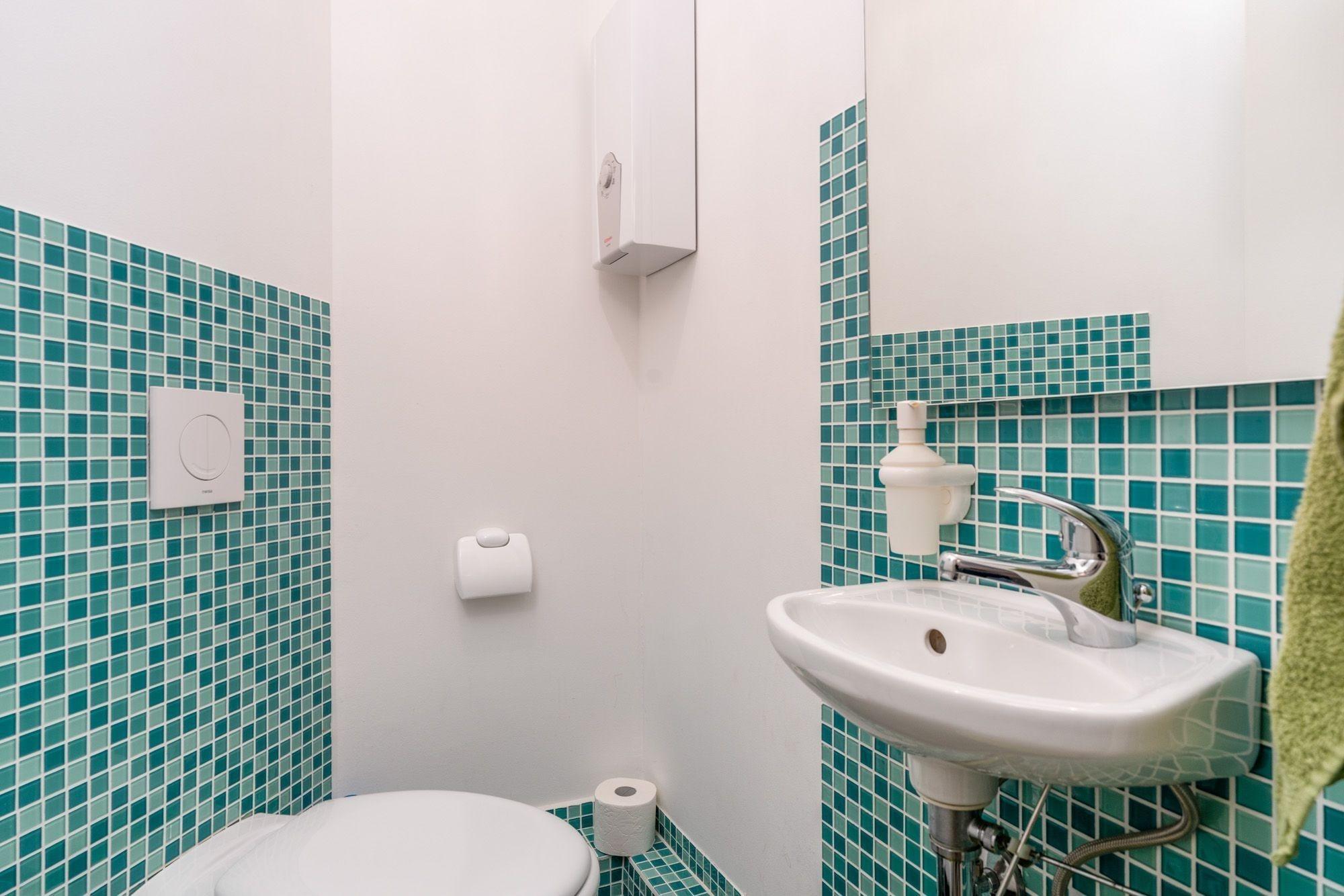 Das Badezimmer verfügt zusätzlich auch über eine Fußbodenheizung.